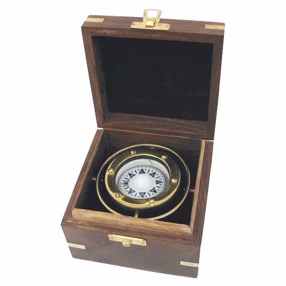 Rettungsboot Kompass, Kardanischer Scheiben Kompass in einer Edelholz Box, der Kompass ist aus poliertem Messing. Der Kompass ist mit einer kardanischen Aufhängung ausgerüstet und dreht sich somit in jede gewünschte Position. Dieser Artikel gehört zu unseren zahlreichen Angeboten aus dem Bereich der maritimen Dekoration. Wir haben besonderen Wert auf die Qualität und die historische Genauigkeit der Objekte, unter Verwendung hochwertiger Materialien gelegt.