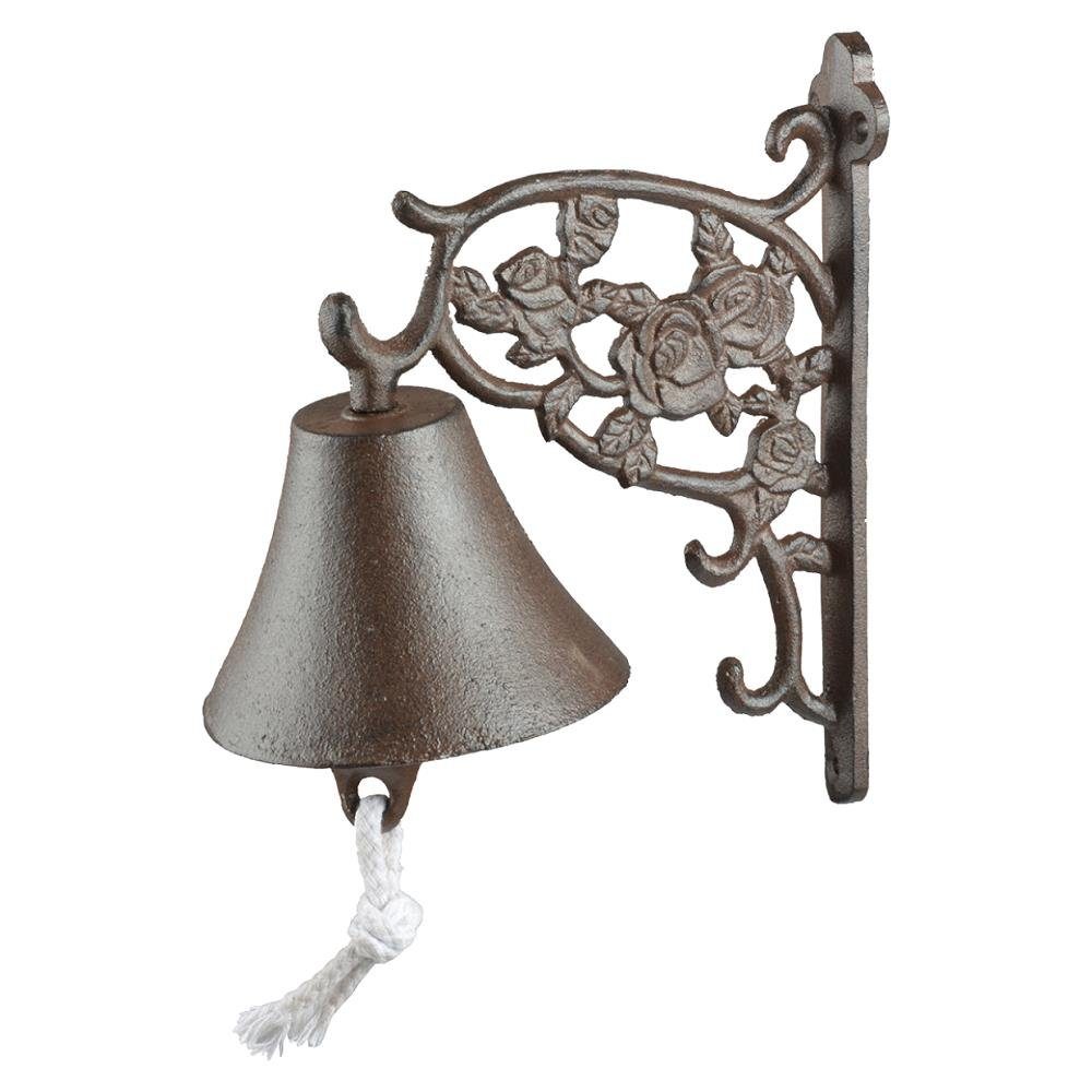 Türglocke Rosen, Nostalgie Wandglocke mit Rosenranken aus Gusseisen, Garten Glocke im Landhausstil. Diese rustikale Glocke ist per Hand nach traditioneller Handwerkskunst gegossen worden.