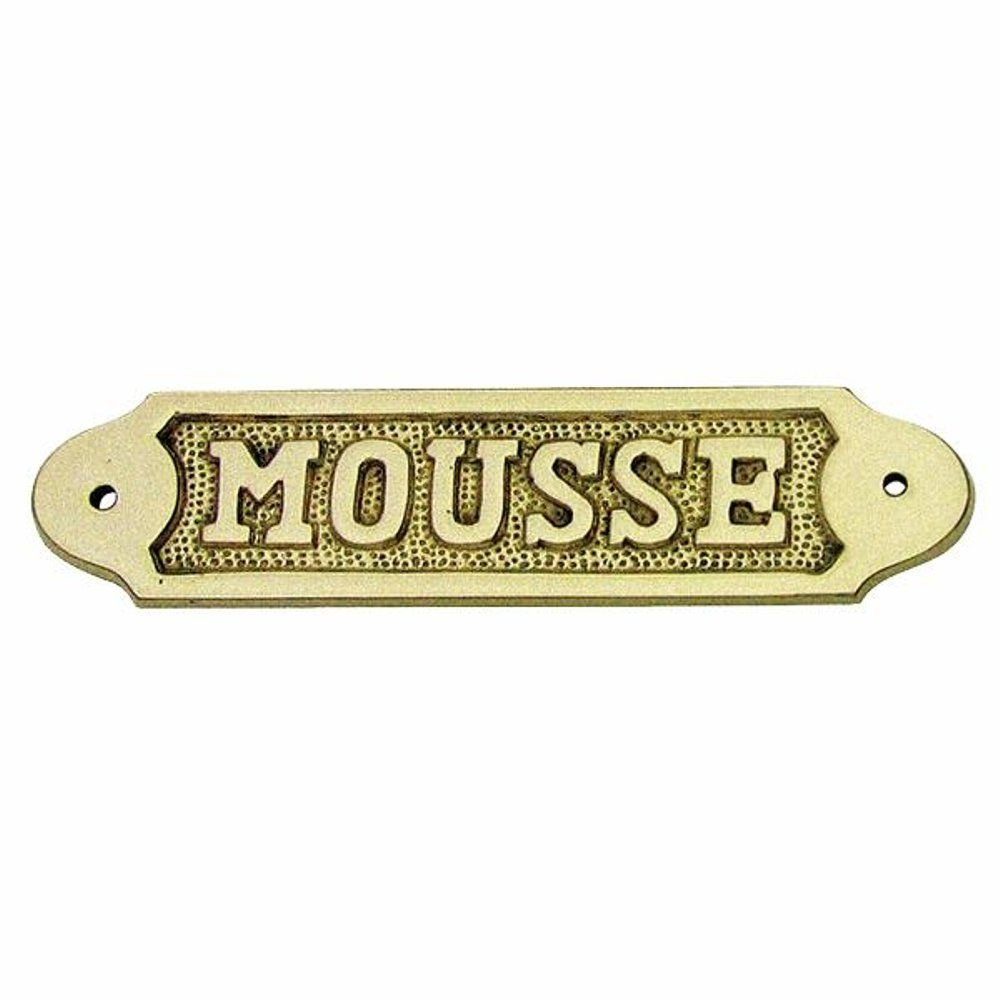 Türschild "Mousse", Maritimes Kabinen, Kajüten Schild, aus massivem Messing mit erhabenen Lettern. Das Schild hat zwei Bohrungen, Befestigungsmaterial wird nicht mitgeliefert.