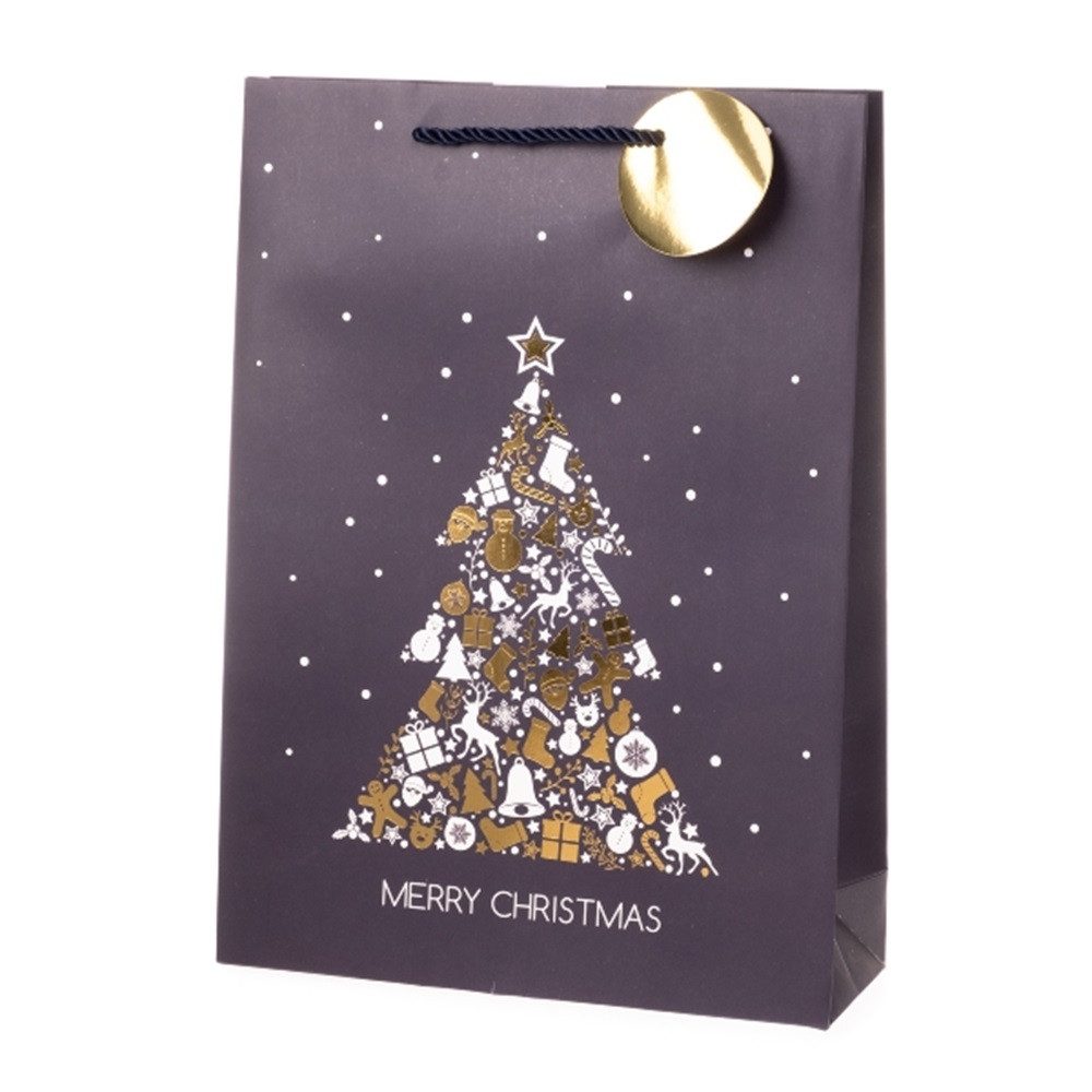 Geschenktüten Weihnachten Edle Tanne in Gold und Blau, 10 Papiertüten, Papier Tragetaschen, Tragetasche matt glänzend, Geschenktasche aus stabilem, schwerem Papier (210g/m²).