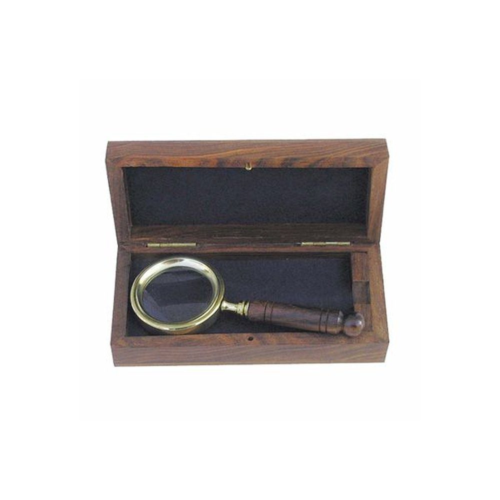 Nostalgische Messing Lupe, Handlupe, Nautik Lupe, Vergrößerungsglas, Seh- & Lesehilfe aus poliertem Messing im Edelholz Kästchen.