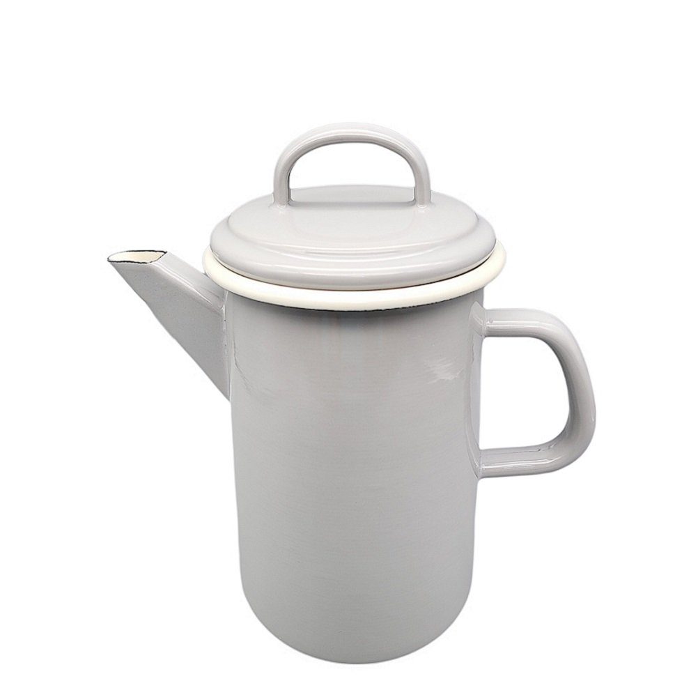 Emaille Kaffeekanne, Deckelkanne, Henkelkanne, Dekor Grau, Creme 1,6 Liter. Diesen Artikel haben wir in unterschiedlichen Dekoren. Besuchen Sie unsere Angebote und suchen Sie nach dem Stichwort "Emaille", dort finden Sie hunderte Artikel aus Emaille. Das produzieren von Gegenständen aus Emaille erfordert zu einem großen Teil reine handwerklicher Arbeit. Daher gleicht kein Produkt einer Serie dem anderen. Kleine Risse, Schrunden und Unebenheiten in den Oberfläche sind Folge des aufwendigen Produktionsprozesses und stellen keinen Qualitätsmangel dar.