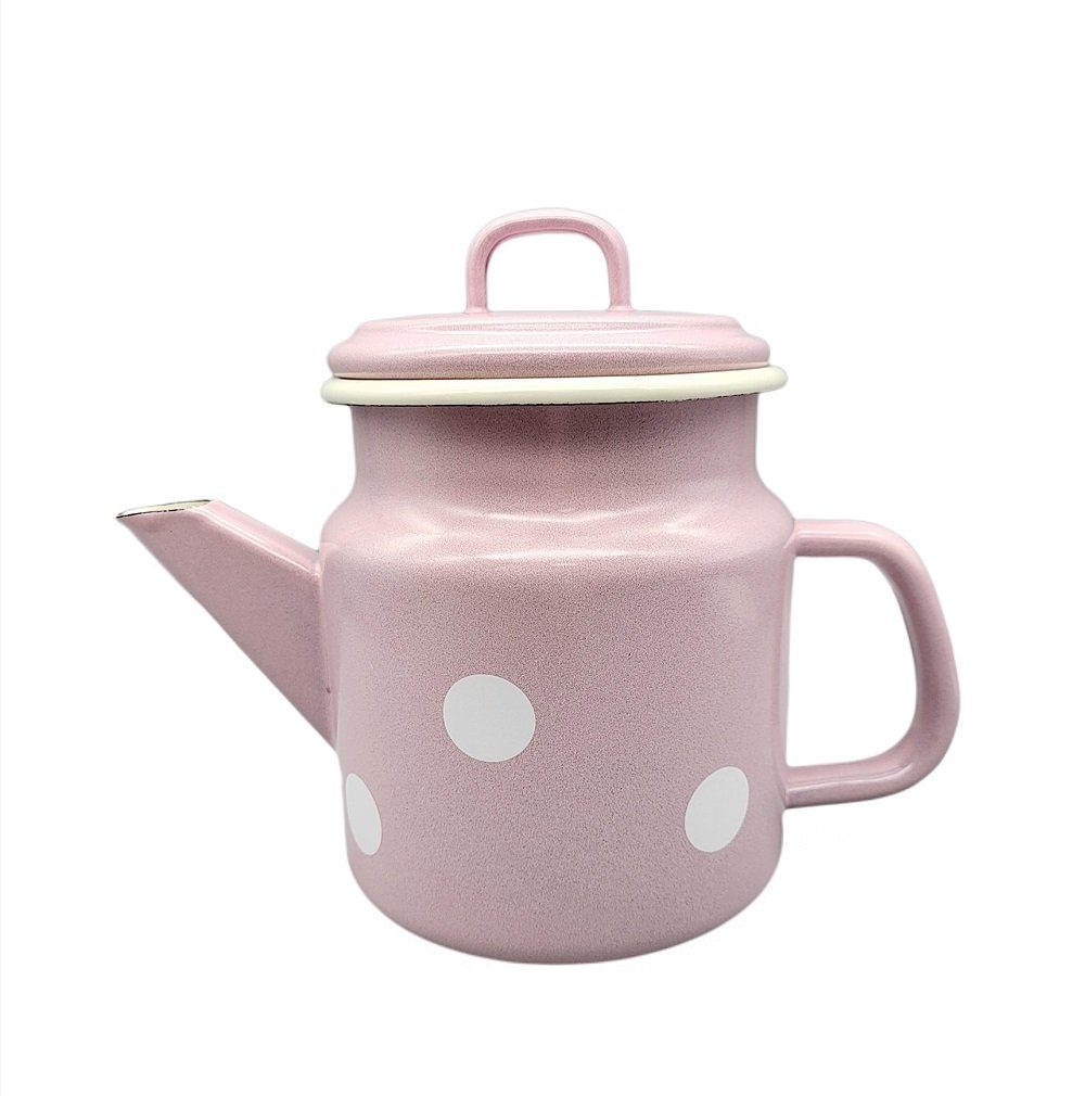 Emaille Teekanne, Deckelkanne, Teepott in Rosa mit weißen Tupfen 1,0 Liter. Diesen Artikel haben wir in unterschiedlichen Dekoren. Besuchen Sie unsere Angebote und suchen Sie nach dem Stichwort "Emaille", dort finden Sie hunderte Artikel aus Emaille. Das produzieren von Gegenständen aus Emaille erfordert zu einem großen Teil reine handwerklicher Arbeit. Daher gleicht kein Produkt einer Serie dem anderen. Kleine Risse, Schrunden und Unebenheiten in den Oberfläche sind Folge des aufwendigen Produktionsprozesses und stellen keinen Qualitätsmangel dar.