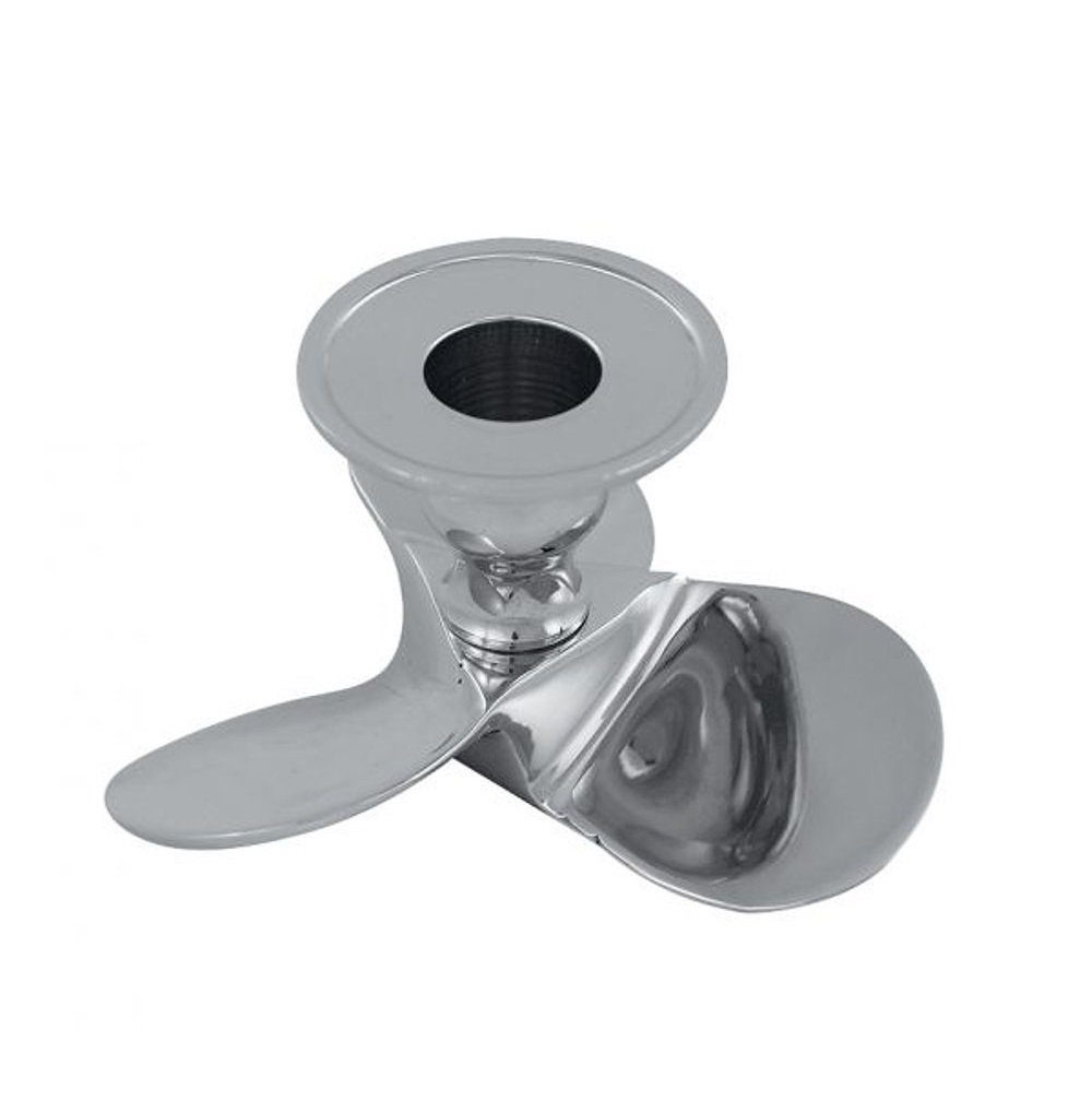 Maritimer Leuchter Schiffsschraube, Kerzenleuchter, Kerzenhalter, Kerzenständer aus vernickeltem Messing. Es passen Standard Haushaltskerzen mit 21 mm Durchmesser in den Kerzenhalter.