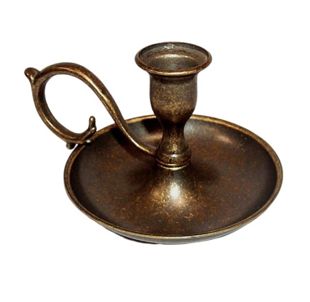 Kerzenständer, Kerzenhalter, Kerzenleuchter, Nachleuchter aus brüniertem (gealtertem) Messing im Biedermeierstil für Kerzen bis 21 mm Durchmesser. Edler und wertiger Messing Leuchter im Antik Stil. Eingearbeitete Gebrauchsspuren sorgen für den rustikalen Charme unserer Produkte und sollen deren nostalgisches Aussehen unterstreichen.