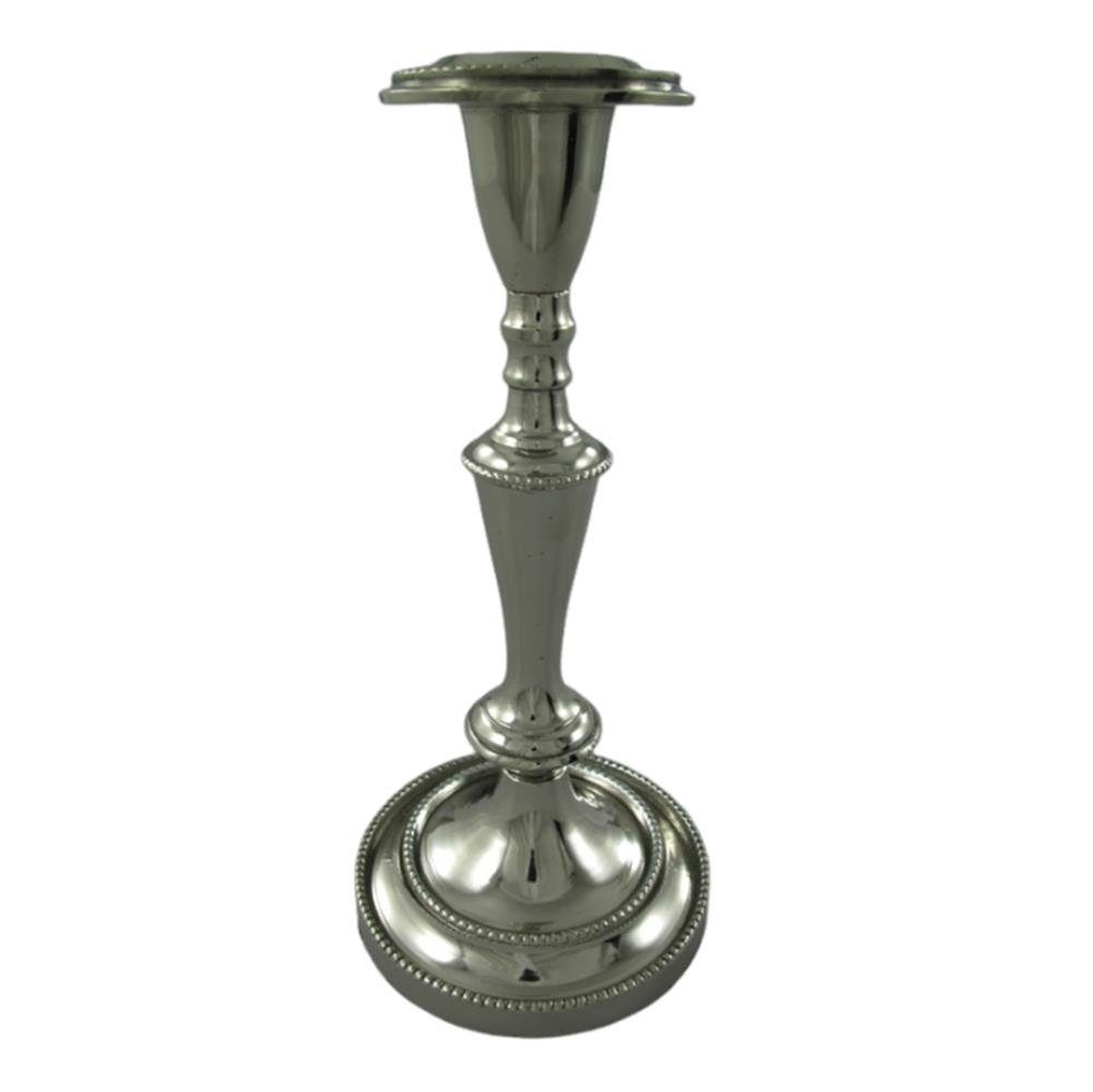Kerzenleuchter, Leuchter, Eleganter Kerzenständer, Tafelleuchter silbern aus vernickeltem Messing, für Kerzen bis 21mm Durchmesser. Dekorativer Retro Leuchter im klassischem Stil. Eingearbeitete Gebrauchsspuren sorgen für den rustikalen Charme unserer Produkte und sollen deren nostalgisches Aussehen unterstreichen.