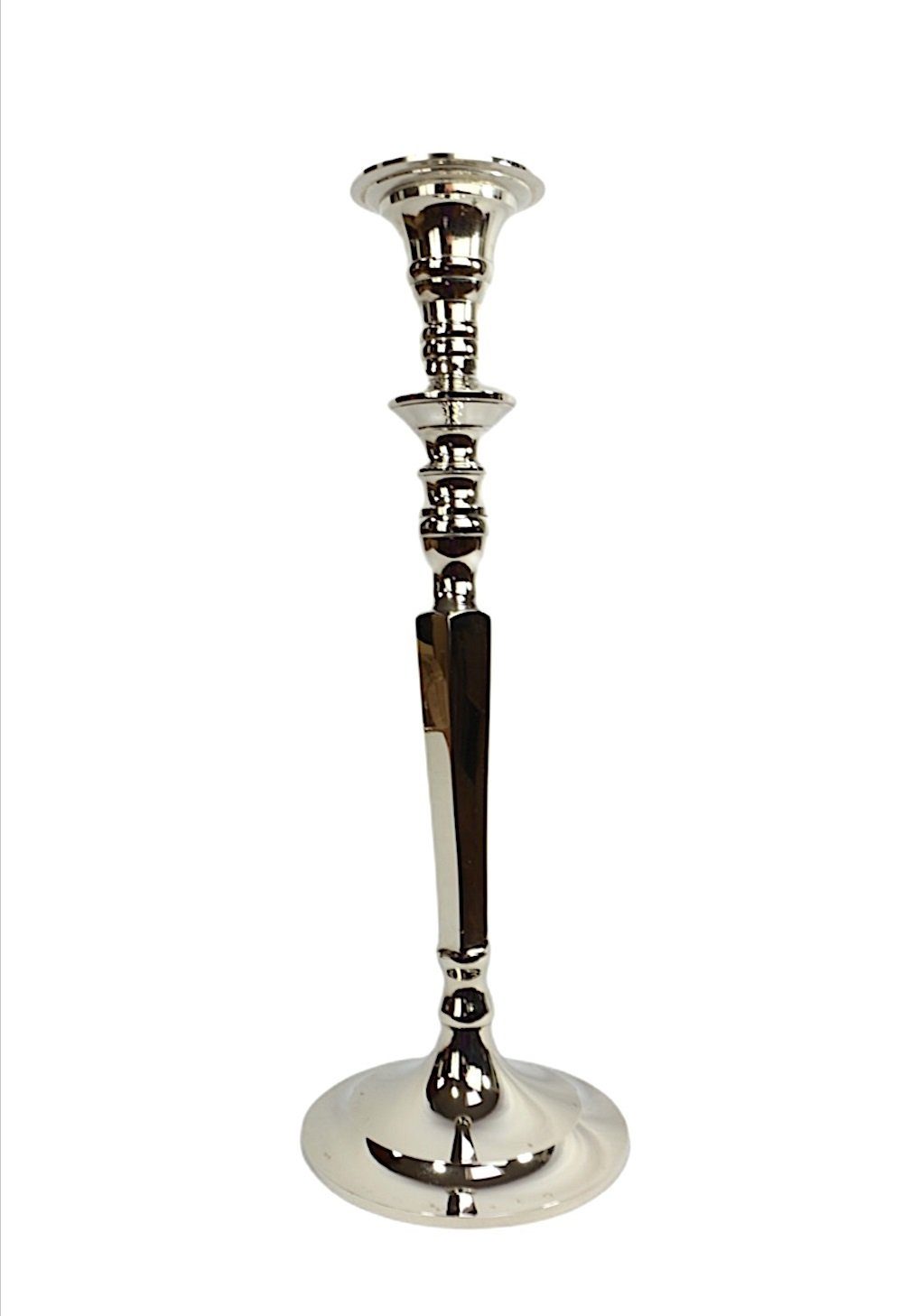 Edler Biedermeier Kerzenleuchter Leuchter Kerzenständer aus vernickeltem Messing, für Kerzen bis 21mm Durchmesser. Dekorativer Retro Leuchter im klassizistischen Stil.