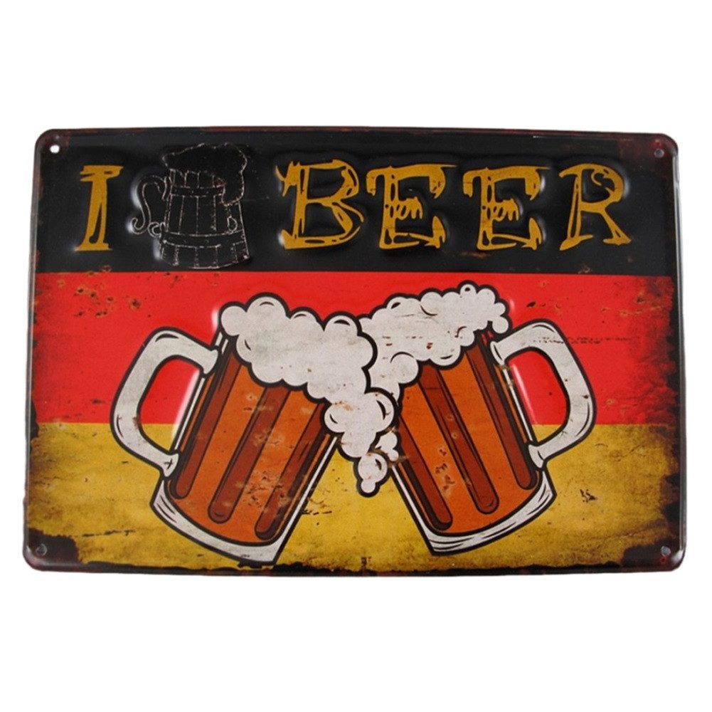 Nostalgie Blechschild, Reklameschild I Like Beer und zwei Humpen, Kneipen Wandschild, Gastronomie Schild 20x30 cm.