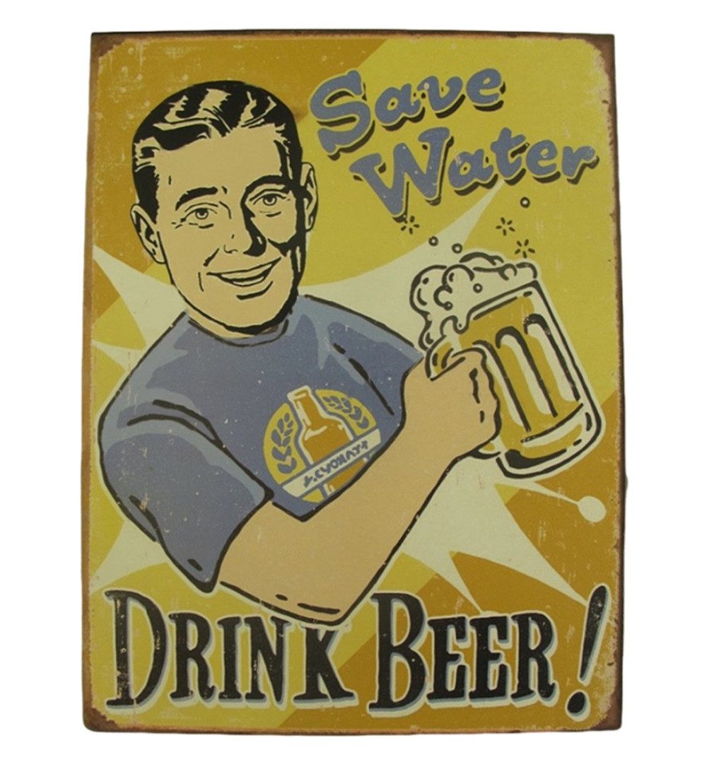 Nostalgie Blechschild, Save Water Drink Beer, Kneipen Schild, Gastronomie Wandschild 33x25 cm.