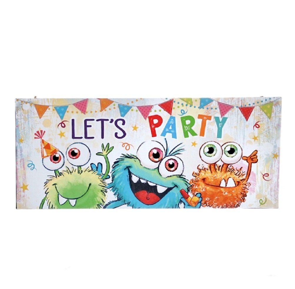 Blechschild, Wandschild, 'Let´s Party', Lustiges Landhaus Schild 13x31 cm. mit Juteanhänger. Das Schild ist für den Innenbereich, das Blechschild ist mit einem bedrucktem Papier bezogen und nicht Witterungsbeständig. Wenn Sie das Schild lackieren kann es auch bedingt Außen verwendet werden.