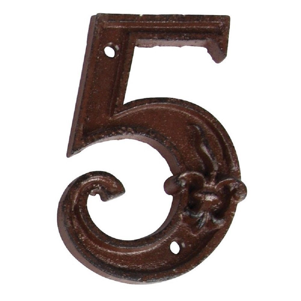 Gründerzeit Hausnummer Nr.5 aus Gusseisen, Antike Nummer "5" in Rostbraun. Bei uns können Sie alle einstelligen Zahlen inklusive der Null und die ersten drei Buchstaben erwerben und sich ganz individuell Ihre Hausnummer zusammenstellen. Die Hausnummer ist sehr stabil und nach alter Tradition per Hand gegossen, Bohrlöcher sind bereits eingebracht. Befestigungsmaterial wie Schrauben werden Aufgrund unterschiedlichster Vorbedingungen an den Gebäuden nicht mitgeliefert.