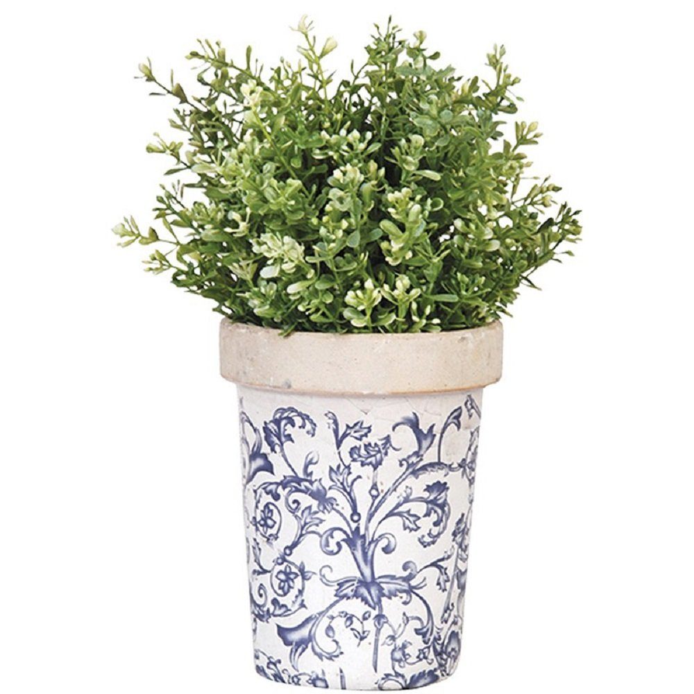 Nostalgie Blumentopf, Keramik Pflanzen Topf, Pflanztopf mit Blauem Barockmuster, krakelierter Keramik Topf Long Fellow. Diese Topf ist sehr rustikal verarbeitet, er hat eine ausgeprägte krakelierte Barockmuster Glasur.