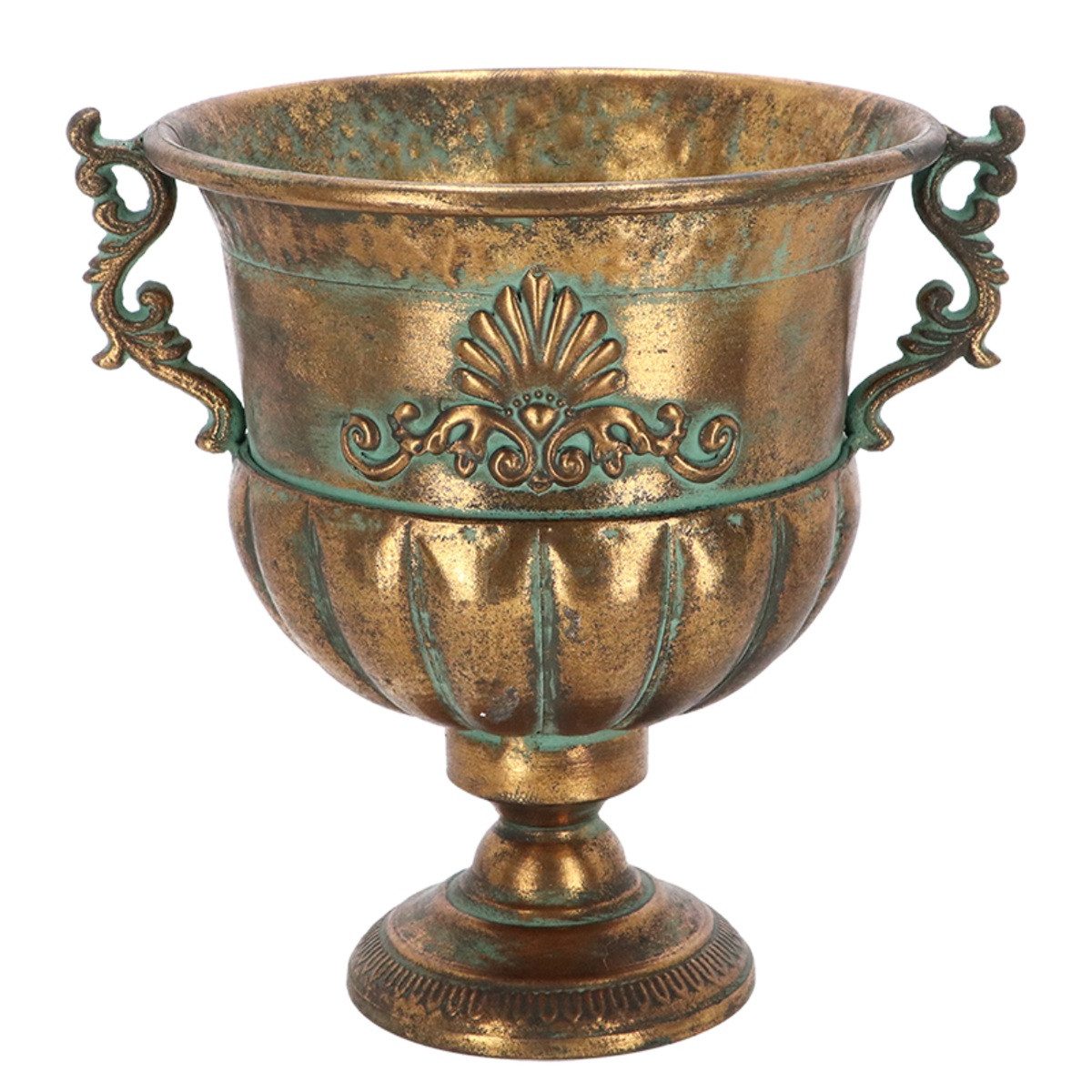 Antike Urne als Pflanzgefäß im Barockstil, Pflanzen Amphore, französischer Blumen Kelch, künstlich gealterte Metall Vase in Gold Antik. Verleihen Sie Ihrem Zuhause französischen Charme. Diese Vase aus Metall mit charakteristischer Vintage-Oberfläche strahlt zeitlose Eleganz aus. Das perfekte Dekorationsstück für Ihr Zuhause. Durch ihr gAussehen fügt sich die Vase mühelos in ländliche als auch industrielle Einrichtungsstile ein. Auch allein für sich ist die Amphore ein echter Hingucker – doch in Kombination mit anderen Größen entfaltet sie ihre volle Wirkung. Gestalten Sie im Handumdrehen eine stilvolle Deko Ecke in Ihrem Zuhause. Wir bieten Ihnen in unserem Shop ein breites Angebot solcher bezaubernden Dekorationsstücke an.