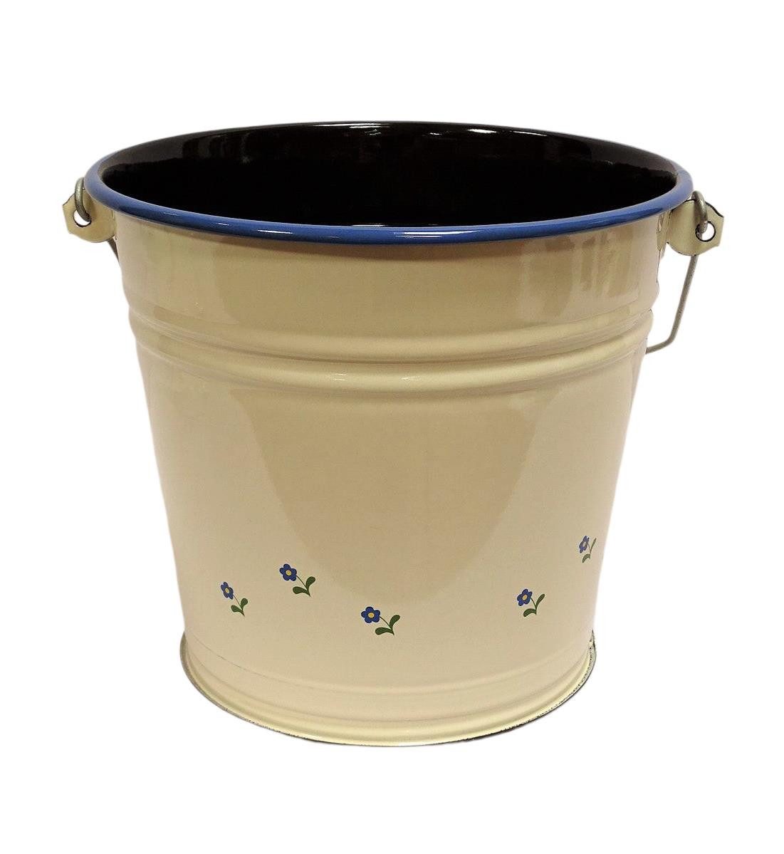 Emaille Eimer, Nostalgie Wassereimer, Creme und Blümchen 6 Liter. Der Tragegriff ist mit einer ergonomisch gedrechselten Holzrolle ummantelt. Diesen Eimer haben wir in verschiedenen Dekoren. Wir führen Hunderte rustikale Emaille Artikel. Besuchen Sie unseren Shop und gehen dann auf die Rubrik Emaille. Das produzieren von Gegenständen aus Emaille erfordert zu einem großen Teil reine handwerklicher Arbeit. Daher gleicht kein Produkt einer Serie dem anderen. Kleine Risse, Schrunden und Unebenheiten in den Oberfläche sind Folge des aufwendigen Produktionsprozesses und stellen keinen Qualitätsmangel dar.