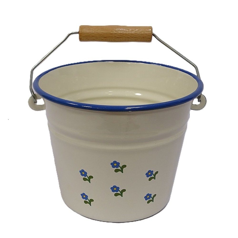 Kleiner Antiker Tischeimer, Emaille Kinder Eimer, Schminktisch Eimer, Kücheneimer Creme mit Blümchen, 2 Liter. Diesen Artikel haben wir in unterschiedlichen Dekoren. Besuchen Sie unsere Angebote und suchen Sie nach dem Stichwort "Emaille". Das produzieren von Gegenständen aus Emaille erfordert zu einem großen Teil reine handwerklicher Arbeit. Daher gleicht kein Produkt einer Serie dem anderen. Kleine Risse, Schrunden und Unebenheiten in den Oberfläche sind Folge des aufwendigen Produktionsprozesses und stellen keinen Qualitätsmangel dar.