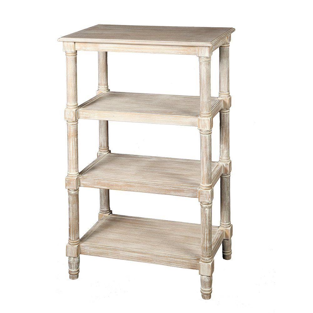 Rustikales Landhaus Regal, vier Böden Regal aus Holz in Shabby Weiß. Klassisches Holz Regal im Retrostil, alle eingearbeiteten Gebrauchsspuren sorgen für den antiken Charakter des schönen Möbels. Das Regal hat vier Regalfächer, der Abstand von Ablage zu Ablage beträgt gleichmäßig 26 cm. Das Regal muss mit wenig Aufwand montiert werden, eine Anleitung liegt der Lieferung bei.