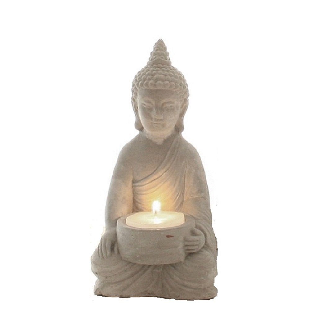 Teelichthalter Buddha, Teelichthalter Buddha Meditation Feng Shui Kerzenständer aus Beton 21 cm. Gartenlicht, Gartenfigur Budda mit Teelicht. Der rustikal gefertigte Buddha erinnert an fernöstliche Gärten. Er ist vorn ausgehölt und kann hier ein Teelicht aufnehmen. Wir empfehlen dringend diesen Artikel keinem Frostwetter auszusetzen. Frost und Eis entwickeln eine große Sprengkraft und können bekanntlich die schönste Gartendekoration zerstören.