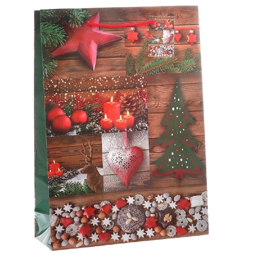 Geschenktüten Weihnachten Baumschmuck, Kerzen und Naschwerk, 10 Papiertüten, Papier Tragetaschen, Tragetasche glänzend, Geschenktasche aus stabilem Lackpapier.