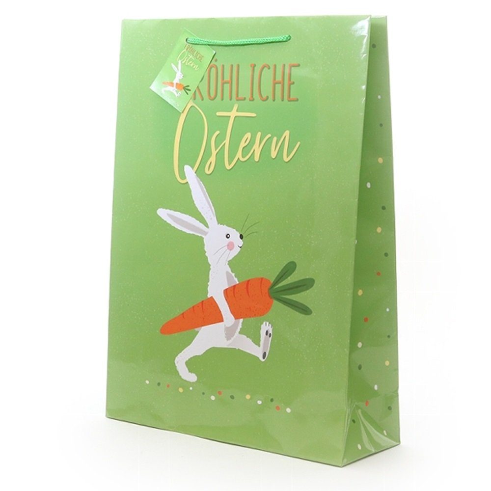 10 Geschenktüten Ostern Hase mit Karotte, Papiertüten 34x25 cm, Papier Tragetasche, Geschenktasche aus stabilem Lackpapier.