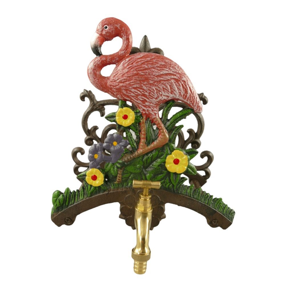 Schlauchhalter Flamingo, putziger Flamingo zwischen Blumen aus farbig bemaltem Gusseisen Gartenschlauch Halter im Landhausstil, rustikaler Wandschlauchhalter mit Wasserhahn. Sie können diesen Schlauchhalter als Wasserquelle (Garten Wasseranschluss) nutzen. Der Wasserhahn hat einen 1/2 Zoll Anschluss. Der Schlauchhalter wird als Montagesatz geliefert, die Montage ist Problemlos durchzuführen, eine Anleitung liegt der Ware bei. Befestigungsmaterial für die Wandmontage wird nicht mitgeliefert.