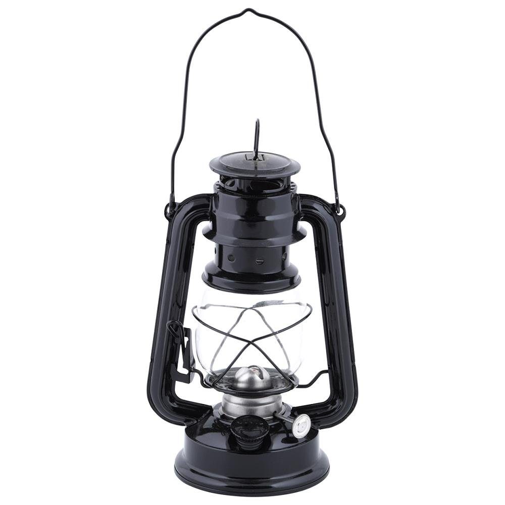 Nostalgie Sturmlaterne, Sturm Laterne schwarz, Retro Petroleumlampe. Diese Laterne hat einen 10 mm breiter Flachdocht.