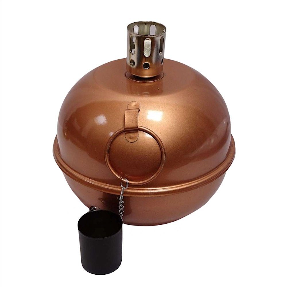Nostalgie Taumelfackel mit starkem Docht, Die Taumelfackel ist verkupfert, einen passenden Bodenständer finden Sie in unseren Angeboten. Diese beeindruckende Taumelfackel wurde zum ersten Mal in Amerika in den 50er Jahren entwickelt, um Autofahrer vor Baustellen zu warnen. Sie ist aus Metall und an der Unterseite mit Kies beschwert. So richtet sie sich wieder auf, wenn sie einmal aus der Balance gerät. Die Taumelfackel hat einen sehr dicken Docht und geht daher auch nicht aus, wenn der Wind stark weht. Die Fackel brennt ca. 40 Stunden mit einer Füllung Lampenöl. Es passt über 1 Liter Lampenöl in die Fackel.