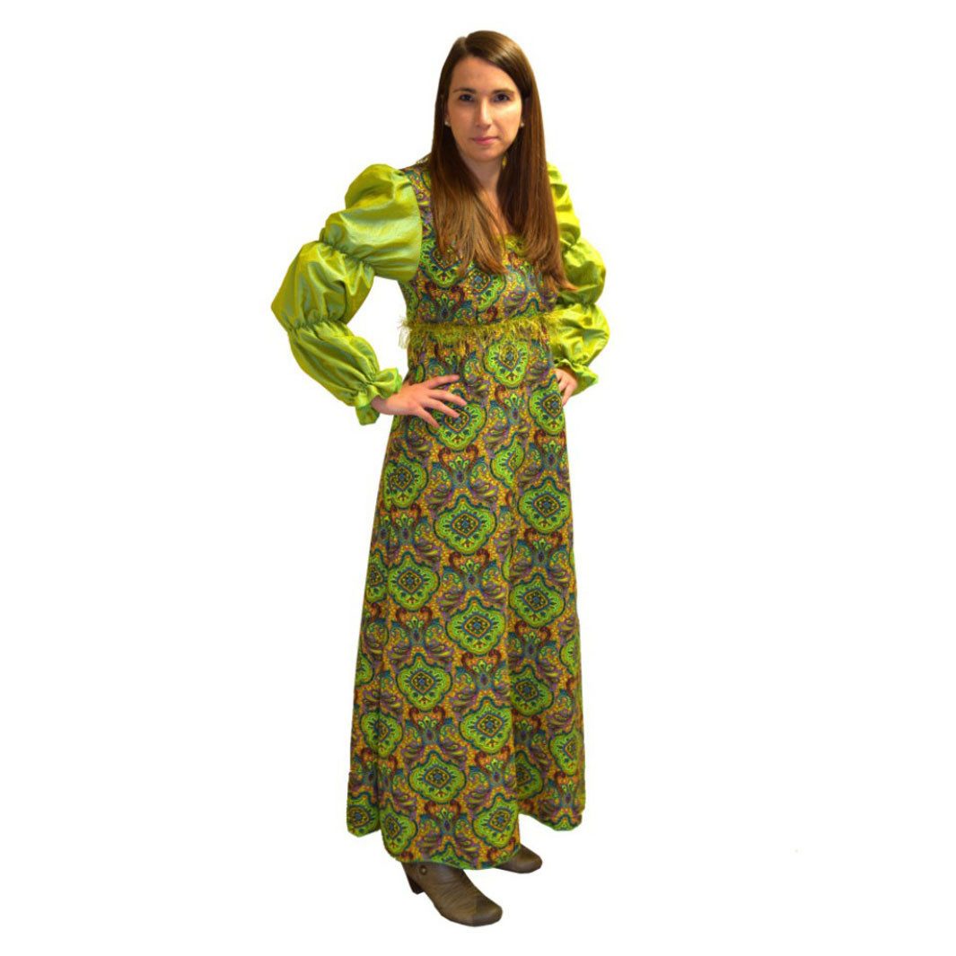 Ob Faschingsfeier oder Mittelalterfest – mit diesem eleganten grün-goldenen Kleid im Mittelalter-Stil ziehen Sie alle Blicke auf sich. Das Kleid überzeugt mit passenden Ornamenten und einem schönen Ausschnitt mit Fransen. Die Ärmel haben eine Bündchen-Raffung, die für optimalen Sitz sorgt. Ein Reißverschluss am Rücken ermöglicht einfaches An- und Ausziehen.
