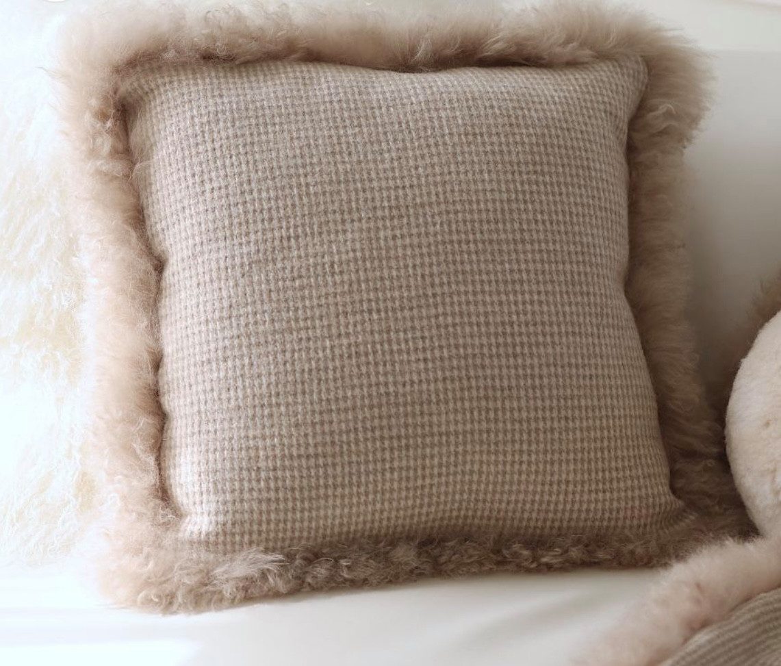 Die Kombination aus kuschelig weichem Wollgewebe und flauschigem Lammfell schafft eine stilvolle und zugleich natürliche Wohnatmosphäre. Der cremefarbene Farbton fügt sich harmonisch in jedes Wohnkonzept ein – von Skandi bis Landhausstil.