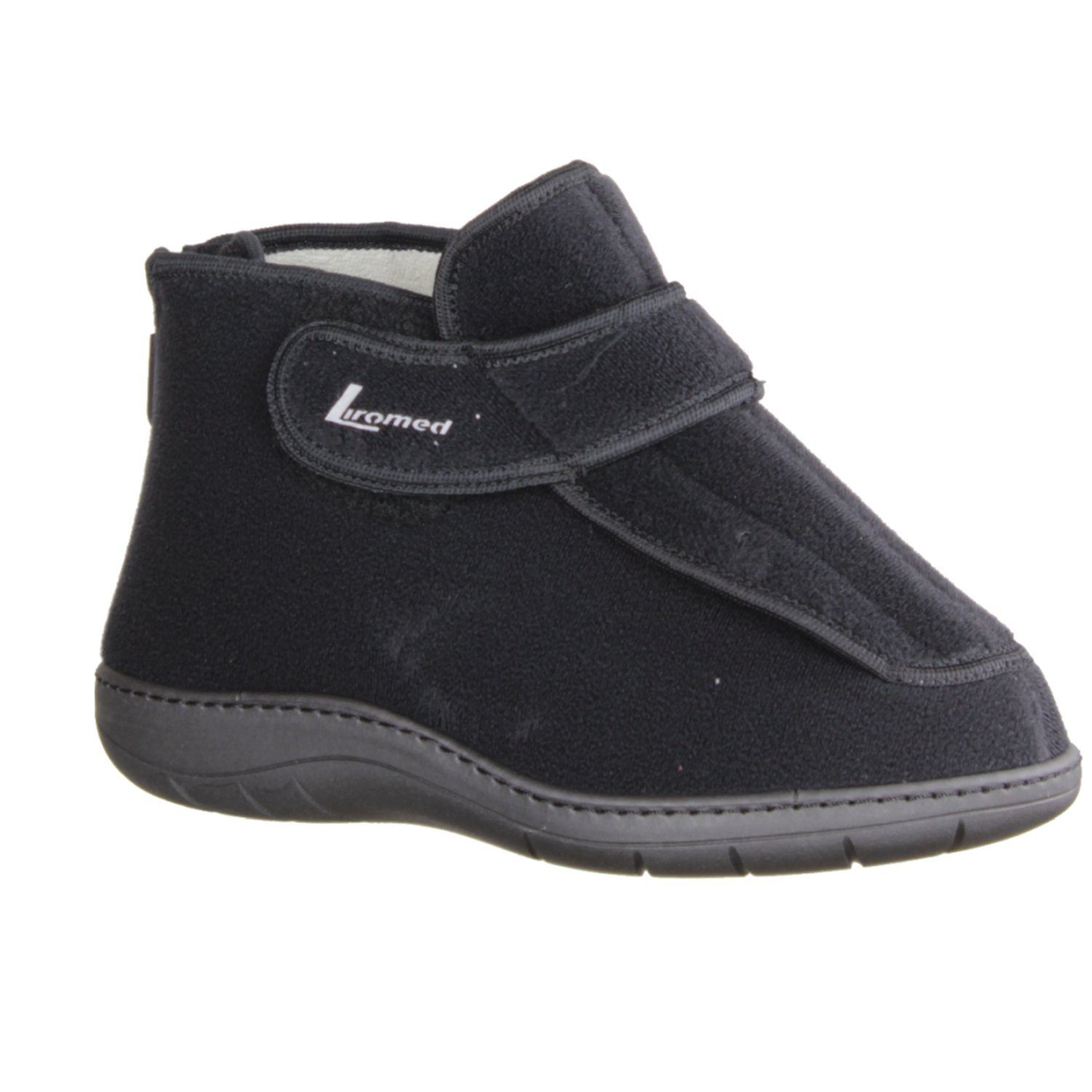 Der ideale Schuh für Füße mit Verbänden und Problemen an der Ferse und Achillessehne. Durch die verschieden angebrachten Klett- und Reißverschlüsse bietet der Schuh, je nach Bedarf, bestmögliche Einstiegshilfen. Der hohe Schaft gibt Ihnen Stabilität und einen sicheren Halt. Ein weiteres Highlight ist die rutschhemmende abriebfeste PU-Sohle mit Gelenkstütze, sie bietet einen idealen Tragekomfort.Und ganz Klasse- Ihr LIROMED ist bis zu 40° waschbar! Wieder einmal ein gelungener Verbandschuh, hergestellt aus gewissenhaft ausgewählten Rohmaterialien, aus dem Hause Schumacher.