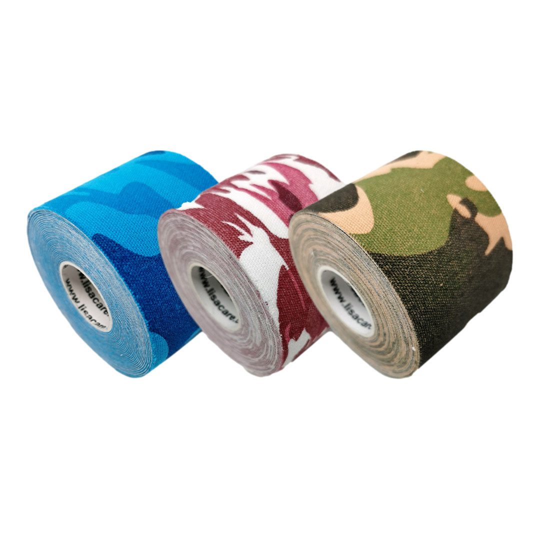 Lieferumfang | Jeweils eine Rolle Kinesiologie Tape Camouflage Grün, Rosa & Blau in 5cm x 5m |