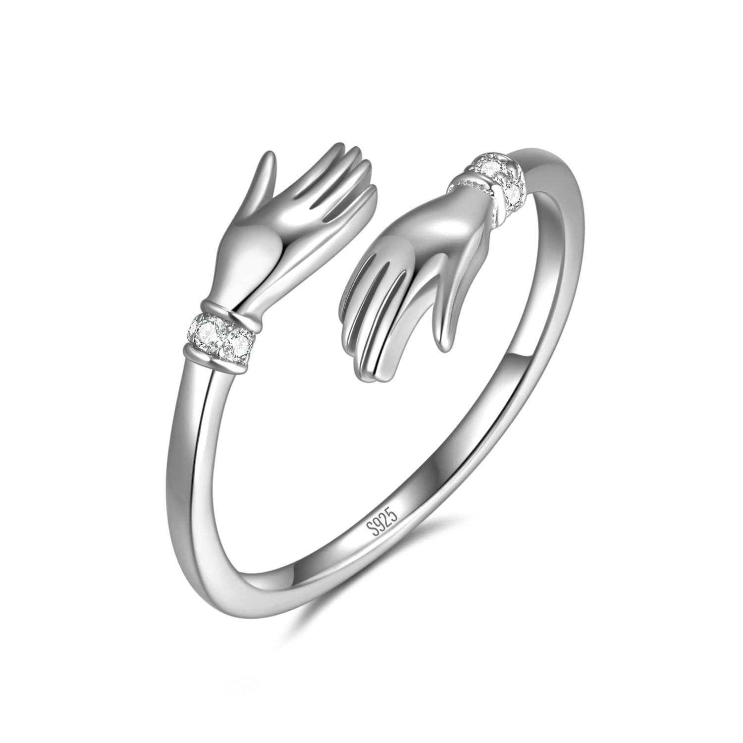 Umarmungsring aus 925 Sterling Silber, Umarmende Hände Design mit funkelnden Zirkonia Steinen, “Ausdruck von Zuneigung und Liebe”, Ring für Damen und Frauen aus Echt Silber