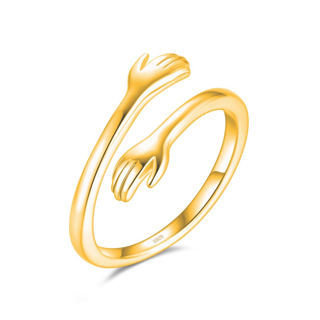 Umarmungsring in 925 Sterling Silber und Gold Verstellbar als Geschenk für Sie, Freundin, Freund, Muttertag und zur Verlobung Umarmung Ring mit Umarmende Hände