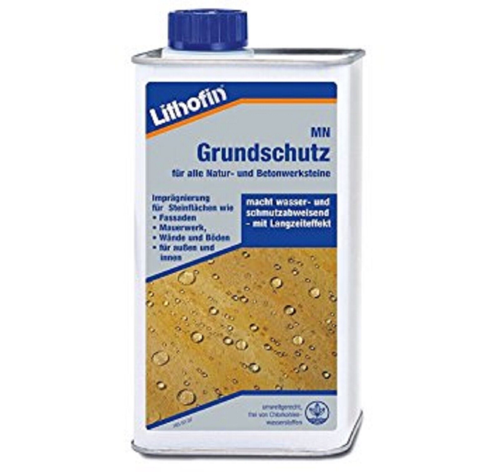 Lithofin MN Grundschutz reduziert die kapillare Saugfähigkeit von Steinoberflächen und macht diese wasserabweisend (hydrophob), sodass Wasser und darin gelöste Schadstoffe nicht mehr eindringen können. Dadurch verringert sich die Verschmutzungsneigung von Fassaden und Bodenbeläge werden pflegeleichter.