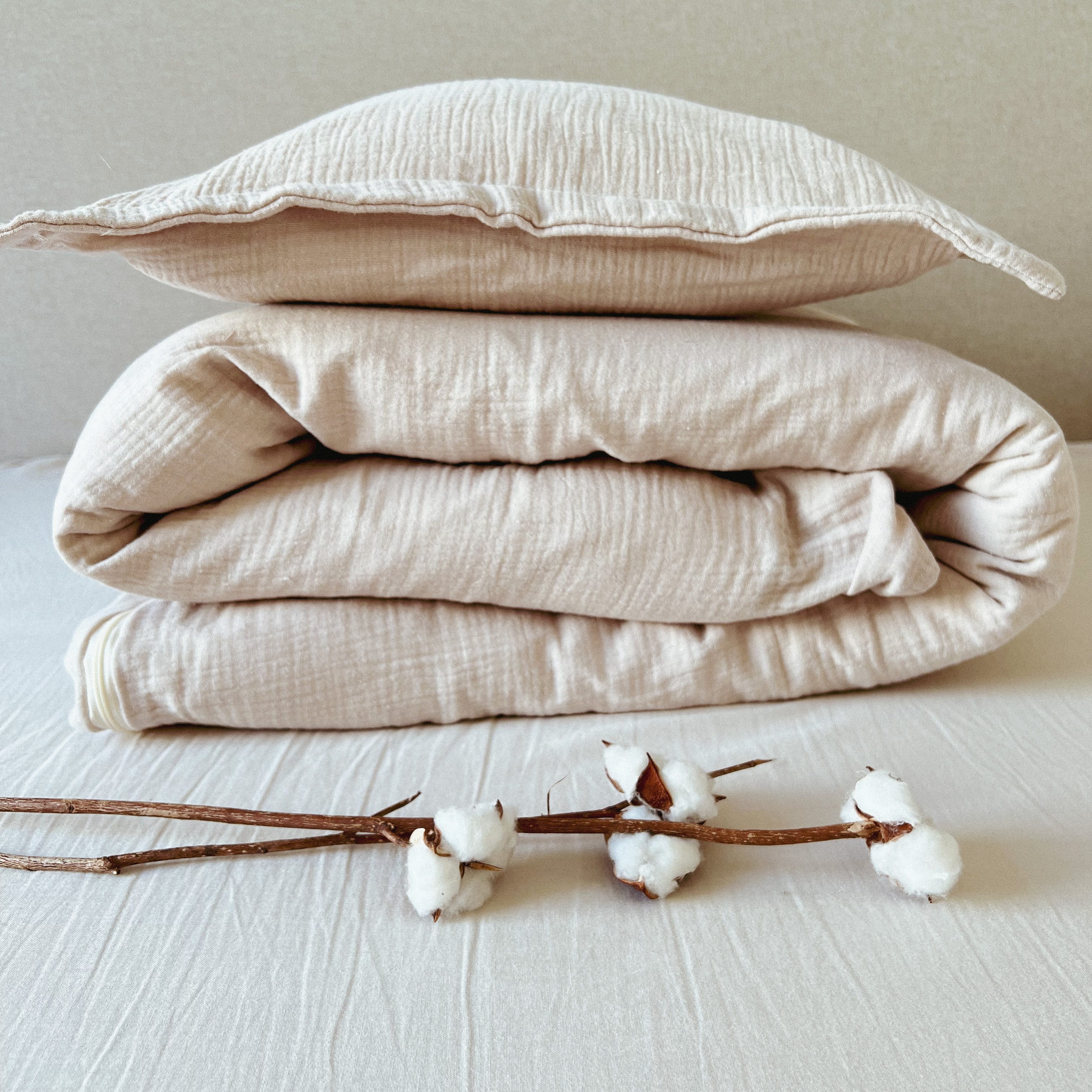Musselin ist atmungsaktiv und hilft die Körpertemperatur zu regulieren und vor Überhitzung zu schützen.