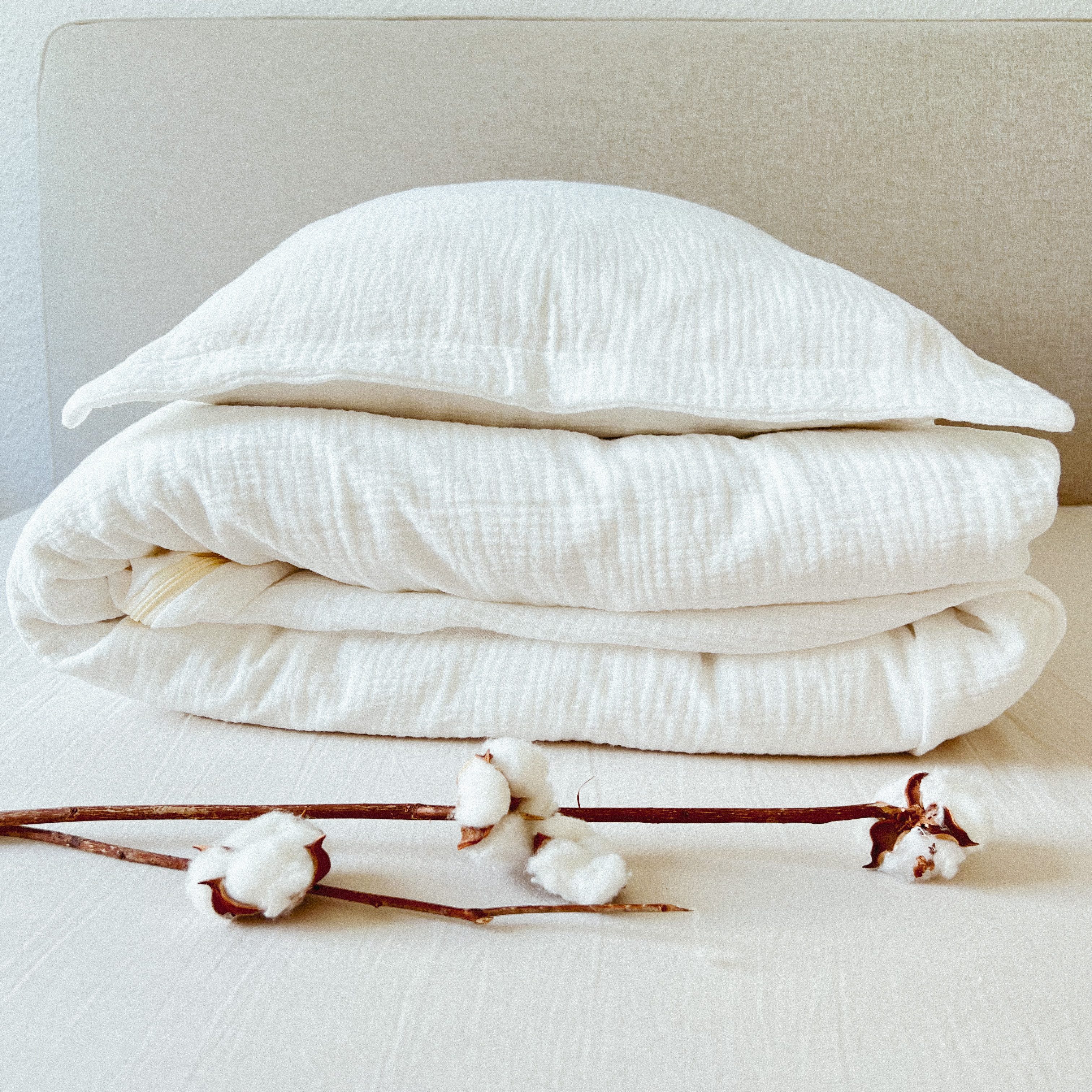Musselin ist atmungsaktiv und hilft die Körpertemperatur zu regulieren und vor Überhitzung zu schützen.