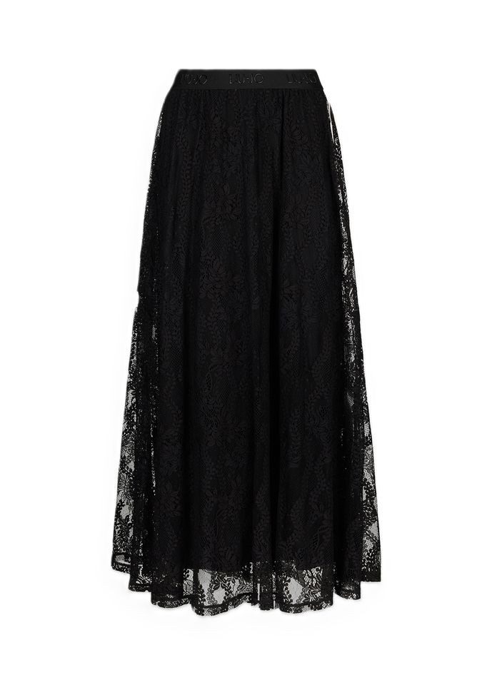 Langer Damenrock von Liu Jo aus edler Spitze mit elastischem Logo-Bund. Femininer Maxirock mit Innenfutter – stilvoll, luftig und alltagstauglich.