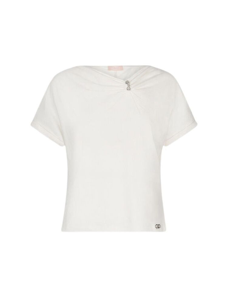 Das Liu Jo T-Shirt Damen überzeugt durch sein modernes Design und hohen Tragekomfort. Gefertigt aus einem weichen Stretch-Baumwoll-Gemisch mit Bambusfasern, bietet es eine angenehme Passform und ein luxuriöses Tragegefühl. Der asymmetrische Ausschnitt verleiht dem Shirt eine besondere Note, während das Schmuckdetail auf der Vorderseite für einen eleganten Look sorgt.