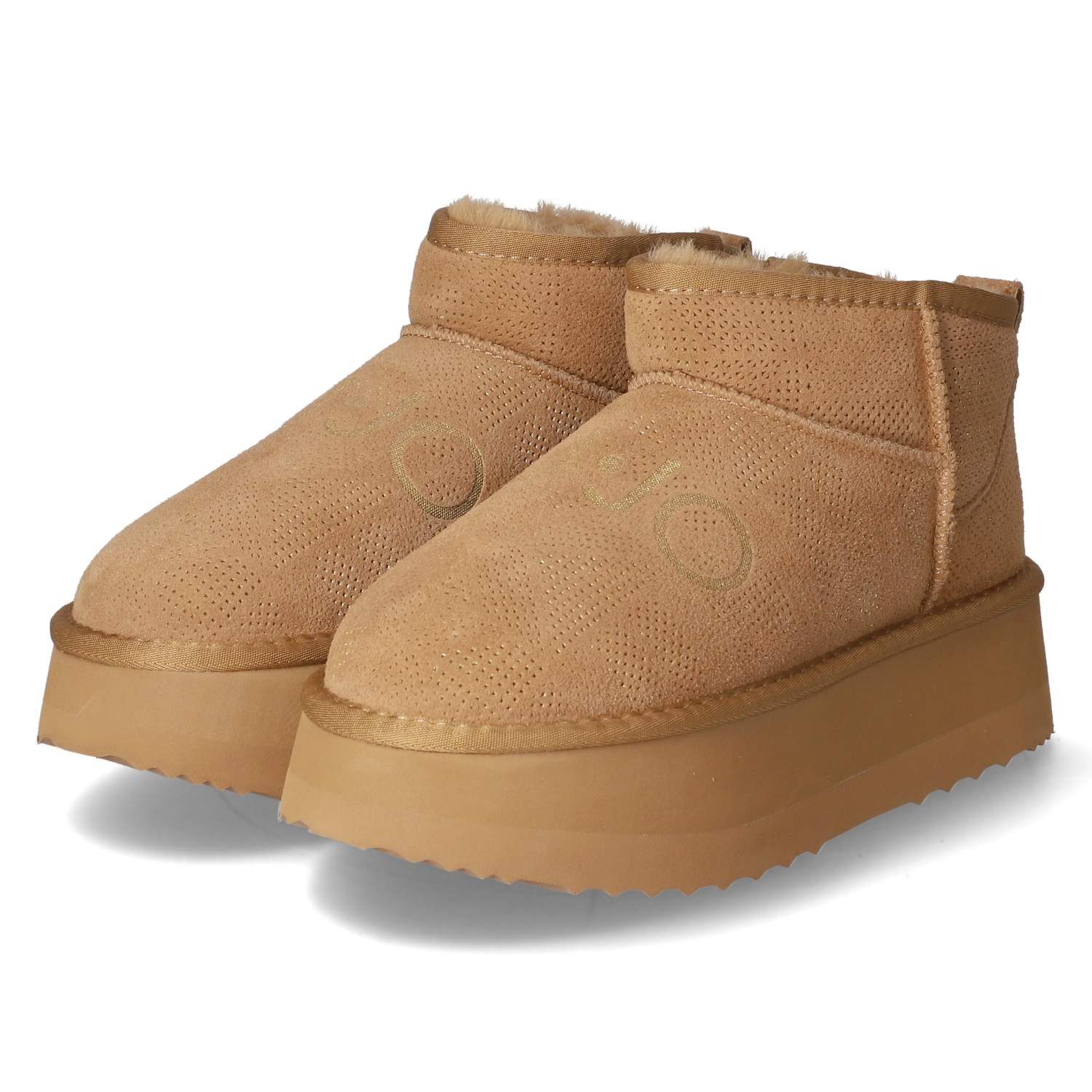 Die LiuJo Damen Winterstiefeletten/Ankle Boots JANE 01 in Braun aus Rauleder vereinen Stil und Funktionalität. Die goldfarbenen Highlights und das Markenlogo setzen elegante Akzente, während die modischen Ziernähte den Stiefeletten einen trendigen Look verleihen.