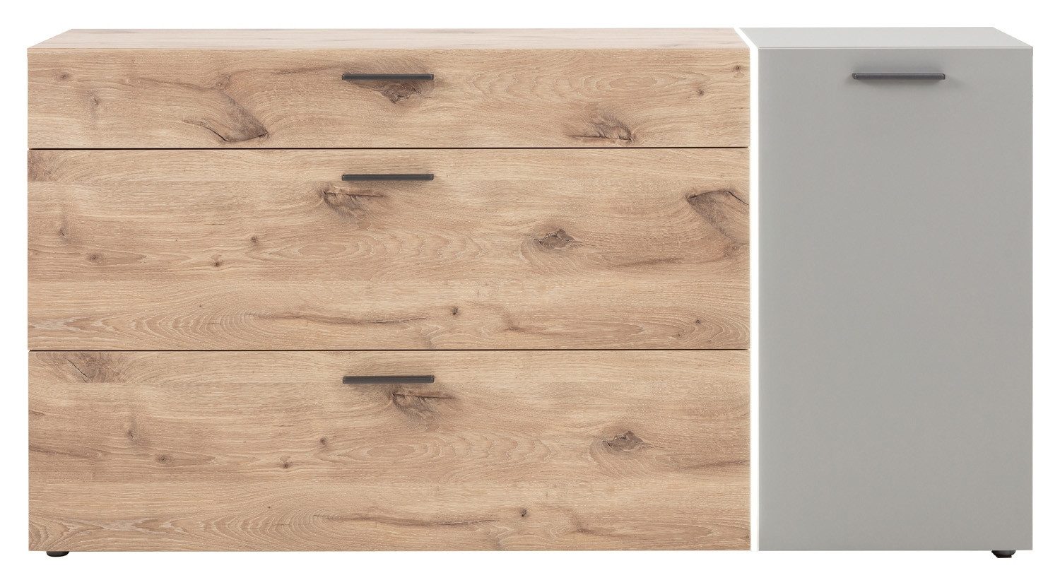 Lieferumfang | 1 Sideboard mit LED-Frontbeleuchtung, 1 Tür, 1 Einlegeboden und 3 Schubladen |