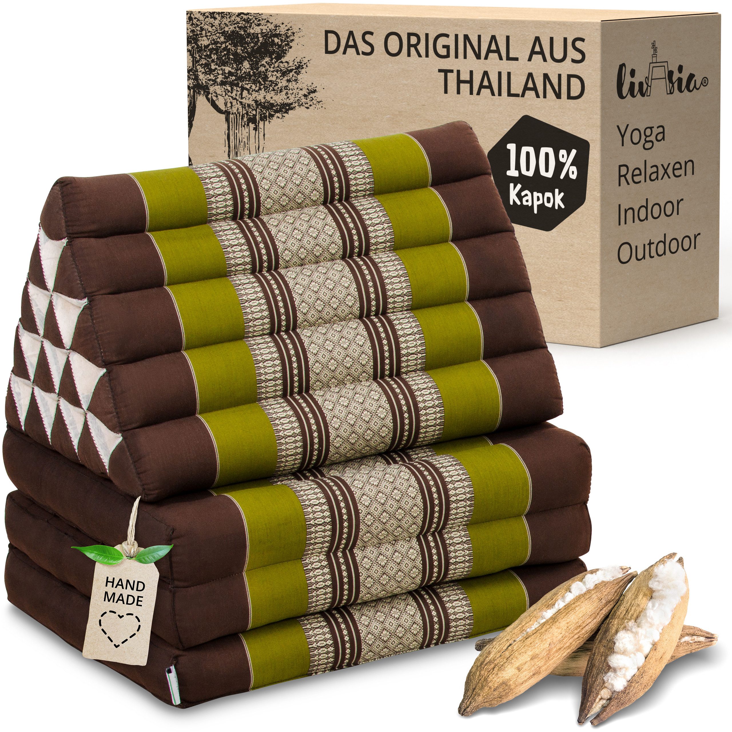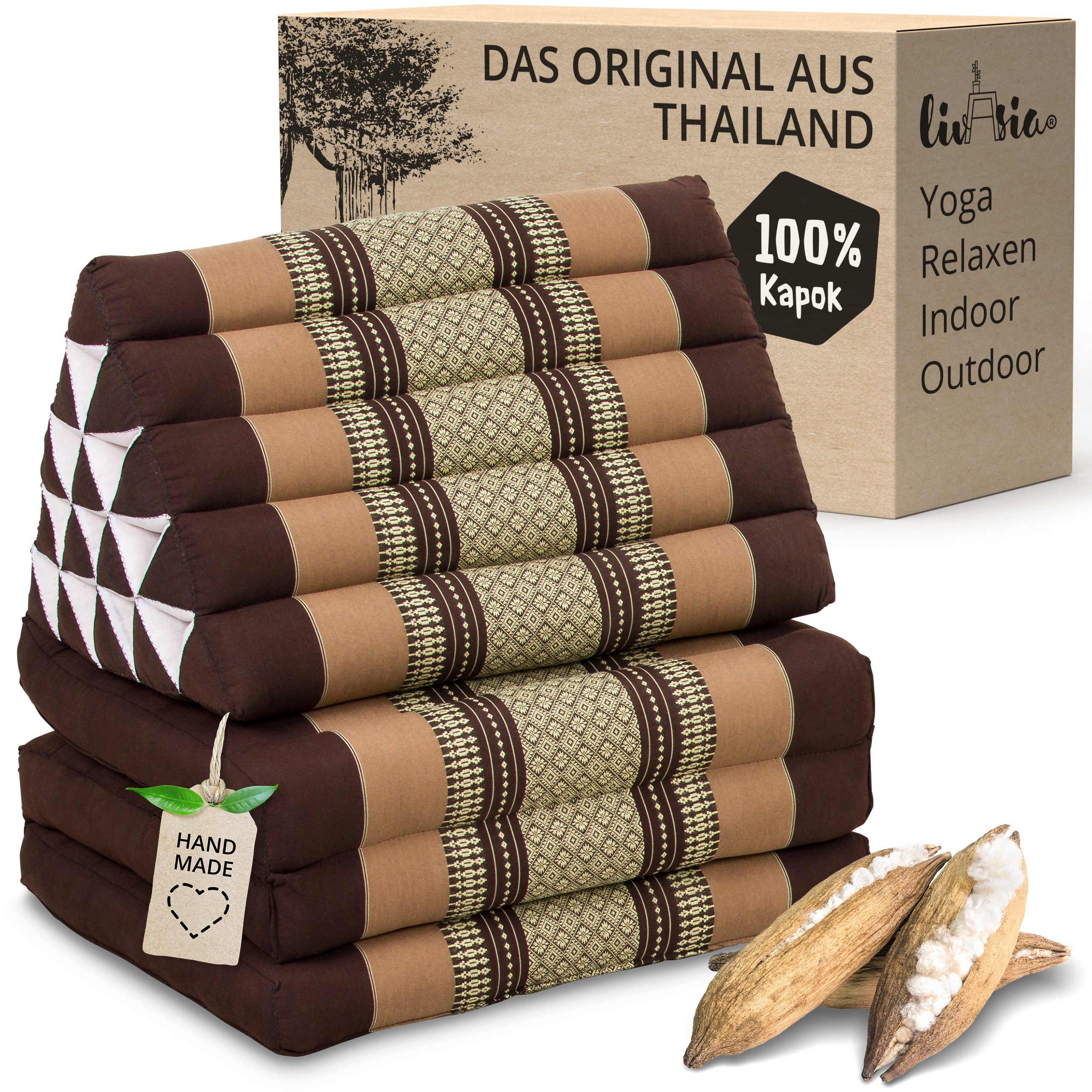 In Thailand ist das Kapokkissen schon seit langer Zeit ein klassisches Möbelstück, auf dem Boden sitzen und schlafen hat dort eine lange Tradition. Das auffällige Thaikissen schmückt nicht nur asiatisch angehauchte Wohnstile, sondern wirkt auch in reduzierten, minimalistischen Wohnräumen als edler Blickfang.