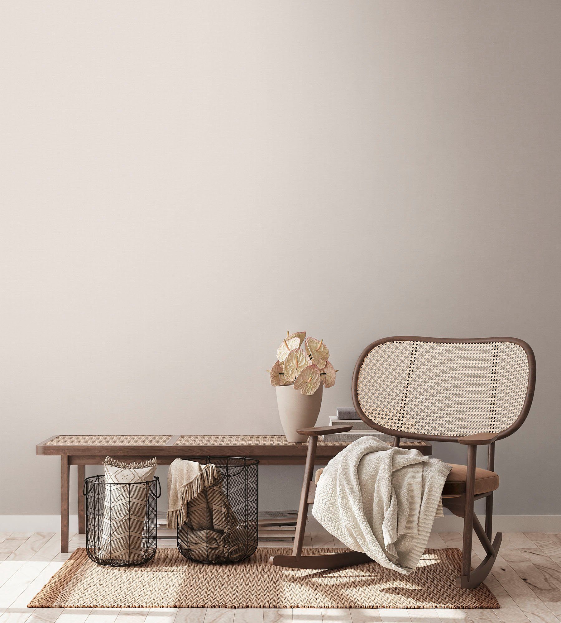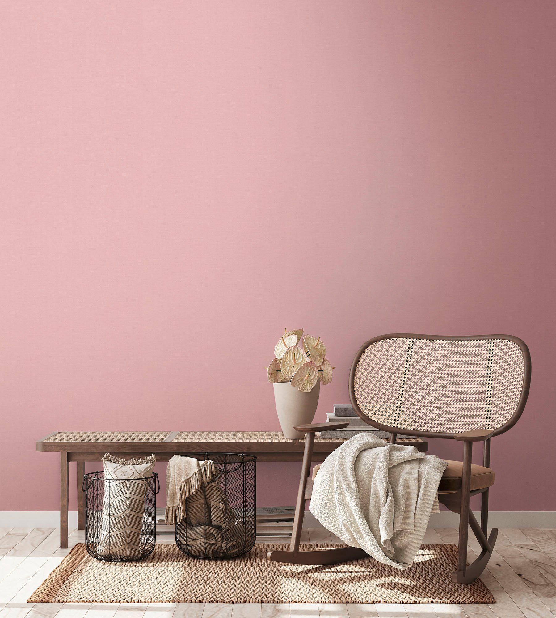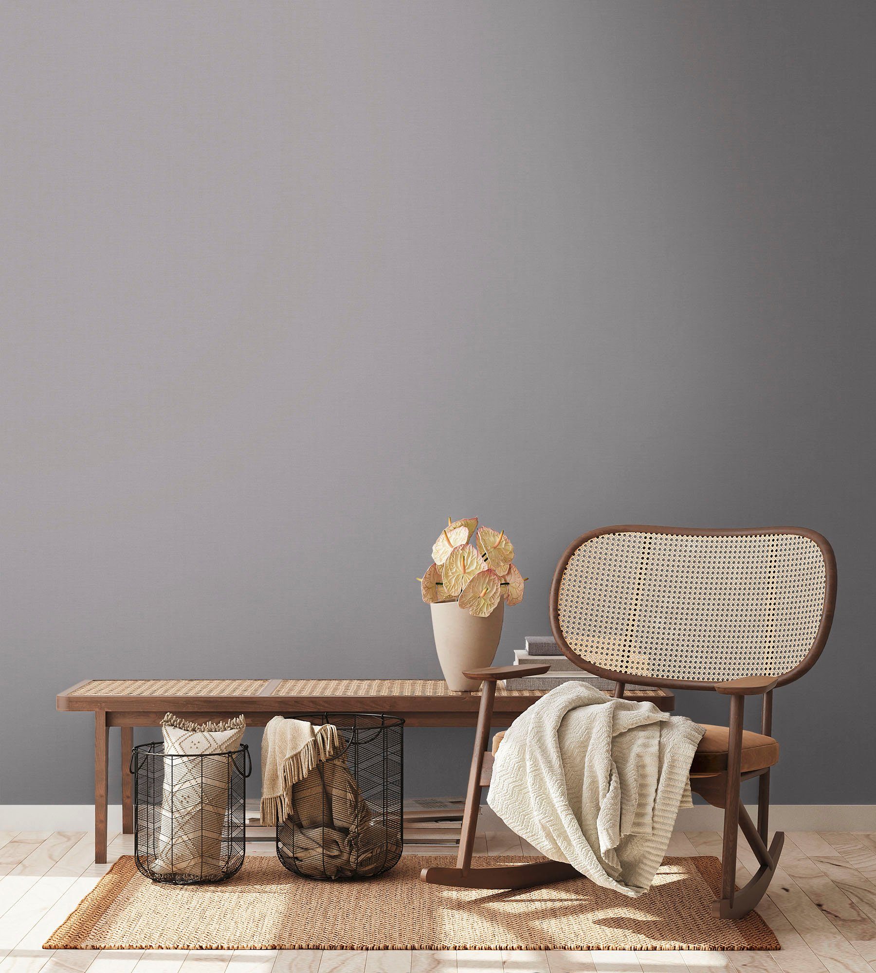 Hinweis Art Tapete | Vliestapeten: Das Material ist dimensionsstabil und kann kleinere Risse überbrücken bzw. kaschieren. Wegen ihrer Wasser- und Dampfbeständigkeit können Vliestapeten auch sehr gut in Nassbereich und Küche eingesetzt werden. Außerdem lassen sie sich beim späteren Renovieren rückstandslos entfernen und trocken von der Wand abziehen. Der große Vorteil von Tapeten auf Vliesbasis ist ihre besonders leichte Verarbeitung, in erster Linie das Wegfallen der Einweichzeit. Die Wand wird einfach eingekleistert, danach wird die Tapete direkt angebracht. So können Sie auch ohne Tapeziertisch tapezieren. Vliestapeten unterscheiden sich von Papiertapeten durch ein hochwertiges Spezialvlies, das als Trägermaterial eingesetzt wird. |