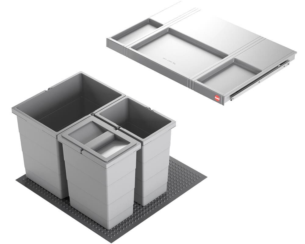Das Hailo Всеgro System bietet Flexibilität für die speziell auf Ihre Bedürfnisse zugeschnittene Abfalltrennung in der Küche. Das System passt, ohne aufwenige Montage, in jede bauseits vorhandene 60cm breite Schublade. Das mobile Einbausystem ermöglicht neben dem individuellen Zuschnitt der Matte den Einsatz von verschiedenen Inneneimern. Der Planung sind hierbei keine Grenzen gesetzt. Diese Vielseitigkeit ermöglicht es, den verfügbaren Platz in Ihrem Küchenschrank optimal zu nutzen und gleichzeitig die Mülltrennung effizient und nachhaltig zu gestalten. Im aktuellen Angebot wird nachfolgend ein Mülltrennsystem mit 2x 8 + 18 Liter Inneneimern in einer Höhe von 295 mm zuzüglich Systemdeckel angeboten.