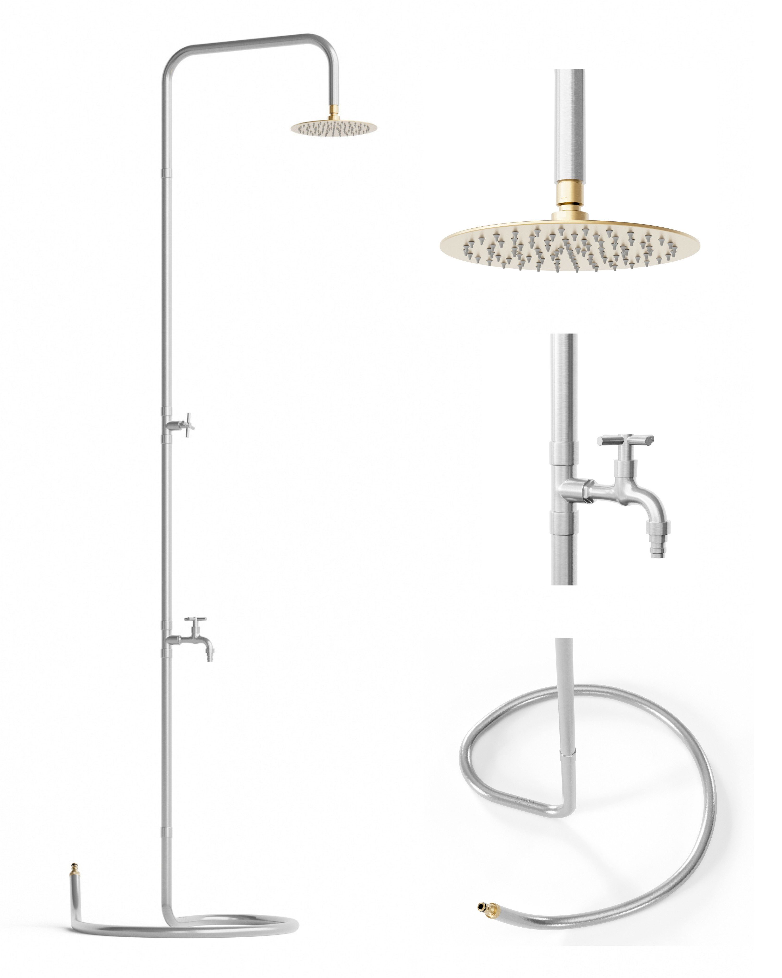 Eigenschaften | Komplette Ausstattung inkl. Bodenanker & Werkzeug, freistehende Edelstahl-Gartendusche |