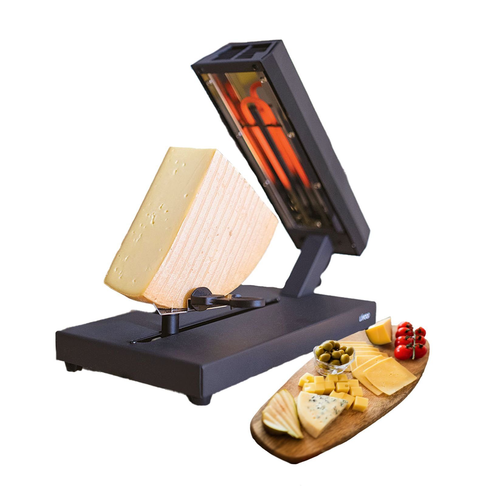 Mit diesem Schmelzgerät lässt sich ein großes Stück Käse für Schweizer Raclette für 6 bis 8 Personen ganz einfach schmelzen. Es sind zwei Spachtel für den Käse im Lieferumfang enthalten.
