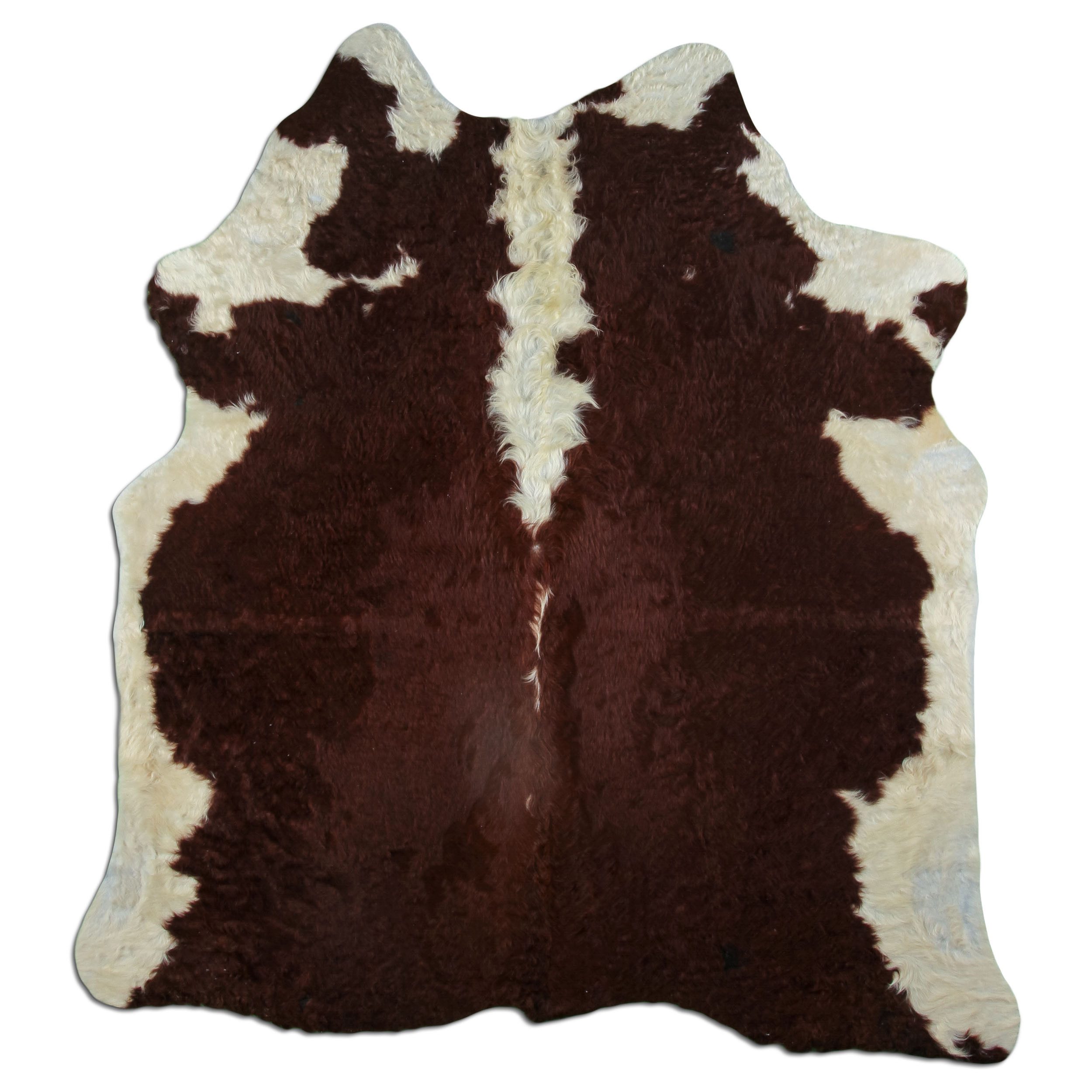 Lebendiges Kuhfell in Rotbraun mit markanten weißen Kontrasten. Es wirkt rustikal, natürlich und setzt in jedem Raum einen auffälligen Akzent.