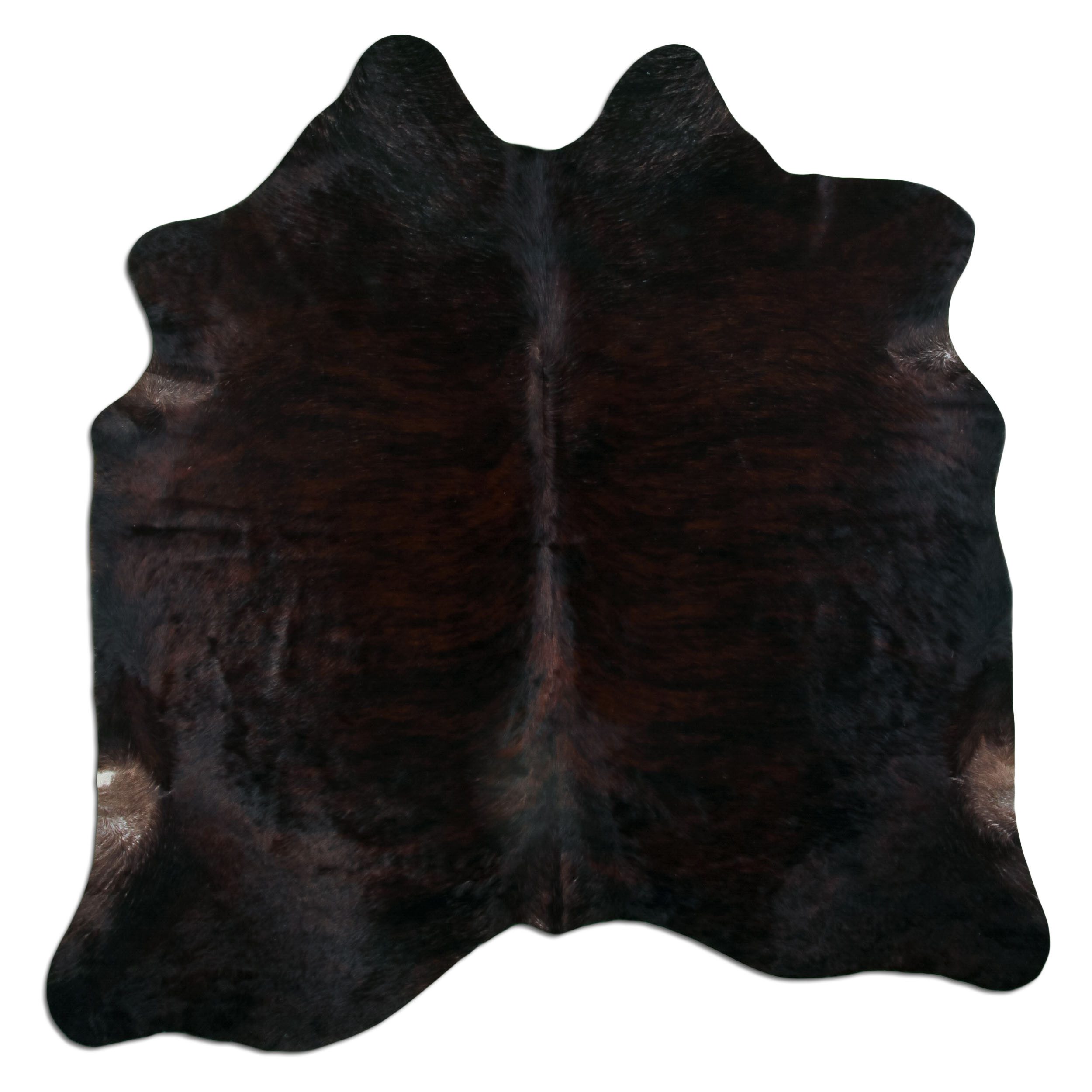 Dieses Kuhfell zeigt dunkle Schattierungen in Braun und Schwarz, die sich lebendig verteilen. Es strahlt Eleganz aus und wirkt besonders stilvoll in modernen Einrichtungen.