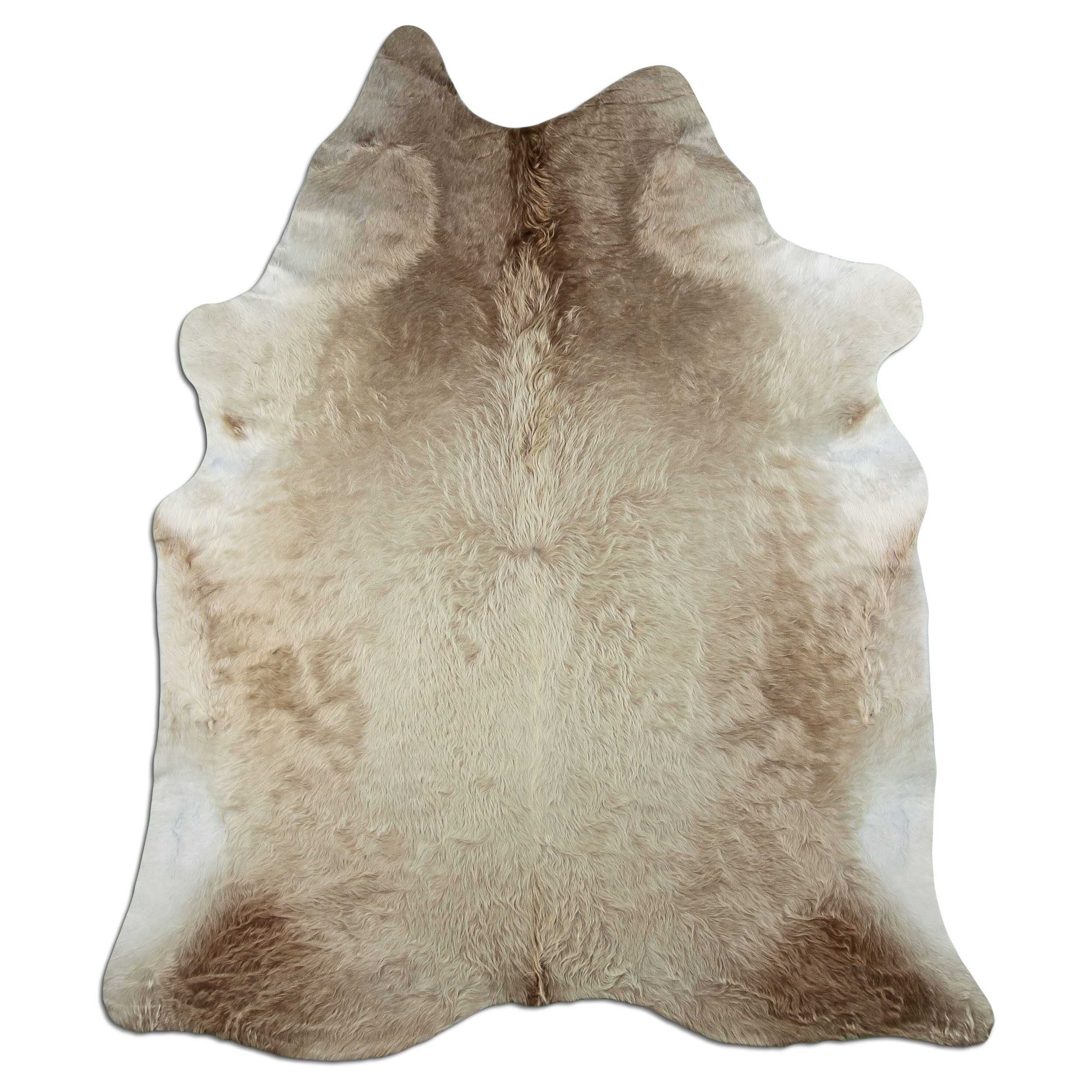 Ein harmonisch gefärbtes Kuhfell mit warmem Beige, hellen Weißpartien und weichen Brauntönen. Es sorgt für eine gemütliche und natürliche Wohnatmosphäre und eignet sich hervorragend als dekorativer Mittelpunkt in Wohnzimmer oder Schlafzimmer.