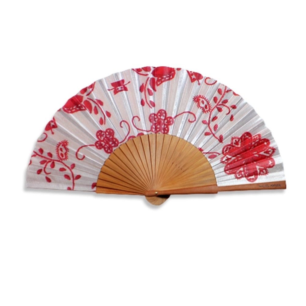 Der Hand Ventilator besteht aus poliertem Birnbaumholz mit künstlichem Siebdruck der die traditionale Stickerei nachahmt.