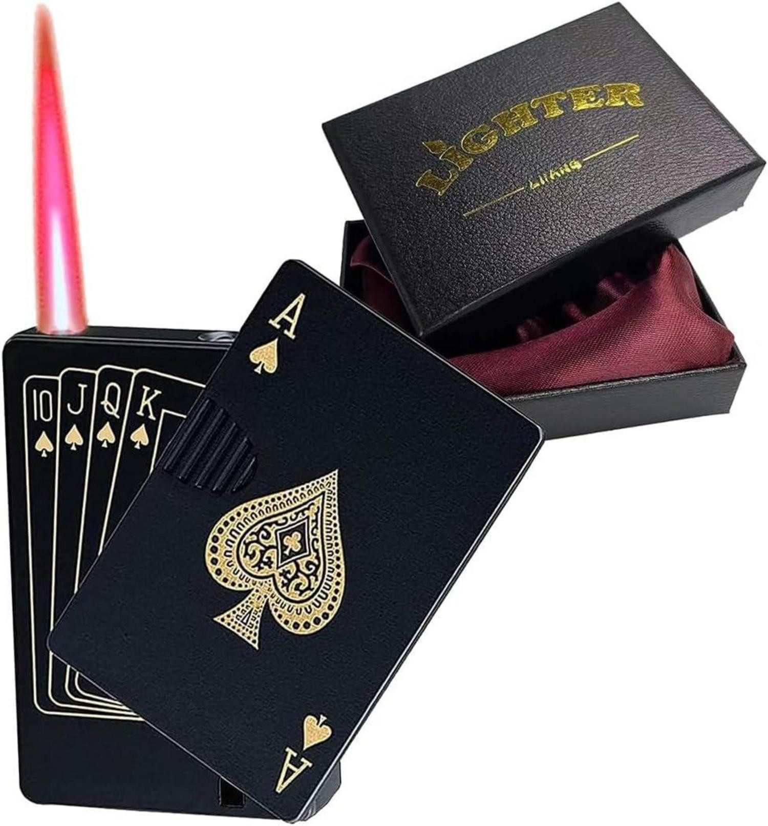 Exquisite Geschenkbox. Für den Stift haben wir ein wunderschönes schwarzes Gehäuse mit edlem Muster gewählt. Dieses erfrischende Feuerzeug/Kerzenlicht ist ein ideales Geburtstagsgeschenk für Männer, Freunde, Verwandte oder Geschäftspartner. Halloween-Geschenke, Weihnachtsgeschenke/Weihnachtsgeschenke. Tragbar: Feuerzeug aus hochfestem Metall mit den Maßen 1,5 bis 0,43 mal 2,3 cm. Dank seines raffinierten Designs passt es problemlos in die Tasche und kann somit überall hin mitgenommen werden. Das Feuerzeug ist so geformt, dass es perfekt in Ihre Handfläche passt und sich sehr leicht halten und verwenden lässt. Nachfüllbares Feuerzeug: Ein traditionelles Butangas-Feuerzeug mit einem leichten und geräumigen Schutzventil. (Hinweis: Bei normalem Gebrauch tritt kein weißes Gas aus dem Auslauf des Feuerzeugs aus. Bei diesem weißen Gas ist der Auslauf des Feuerzeugs verstopft. HINWEIS: Gas ist nicht im sicheren Versand enthalten. Kreativität: Unnötig zu sagen, Feuerzeuge und ihr wisst alle, was so cool ist! 2. Feuerzeuge sind möglicherweise kreativer als andere Feuerzeuge, Markenfeuerzeuge auf Butanbasis zum Schutz vor Wind, geeignet für Küchen, Camping, Rindergrills und Parks.