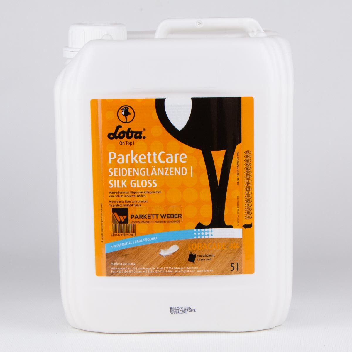 Seidenglänzend: Geeignet für die Pflege von halbmatt und glänzend lackierten Parkett und Holzfußböden. Optimal auch für UV-lackierte Oberflächen.